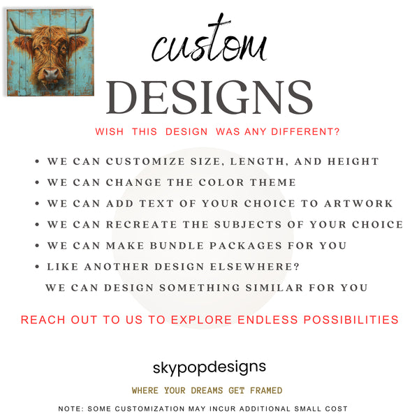 Looking for a custom design, or do you love a particular design but need it in a different size or orientation? Perhaps you've found a design elsewhere and wish for us to create something similar for you? Drop us a message! We're dedicated to meeting your needs and will work closely with you to ensure your vision comes to life.