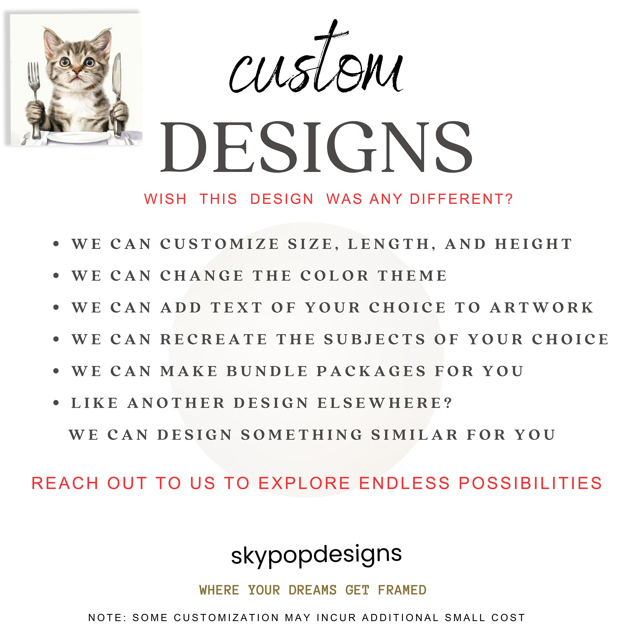 Looking for a custom design, or do you love a particular design but need it in a different size or orientation? Perhaps you've found a design elsewhere and wish for us to create something similar for you? Drop us a message! We're dedicated to meeting your needs and will work closely with you to ensure your vision comes to life.