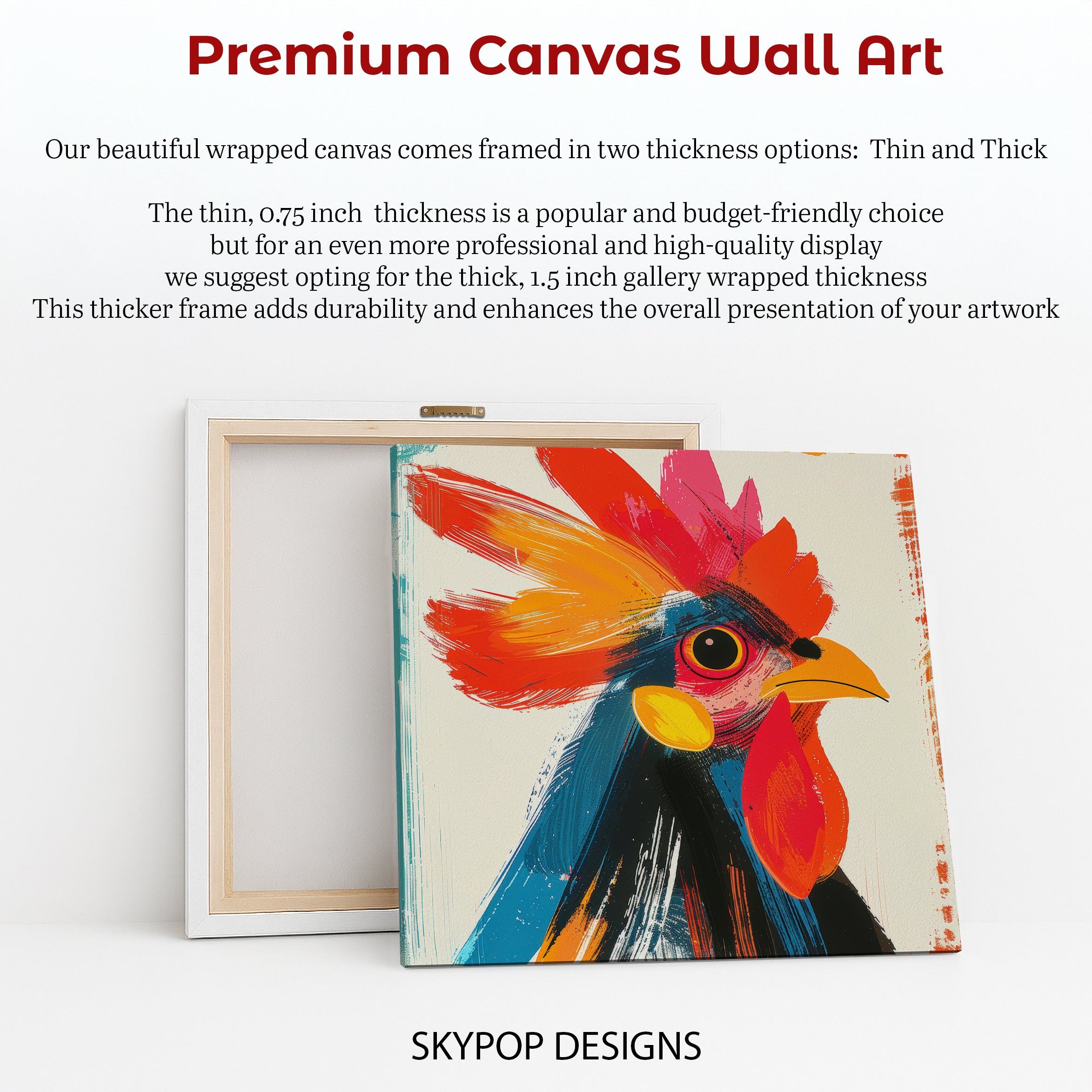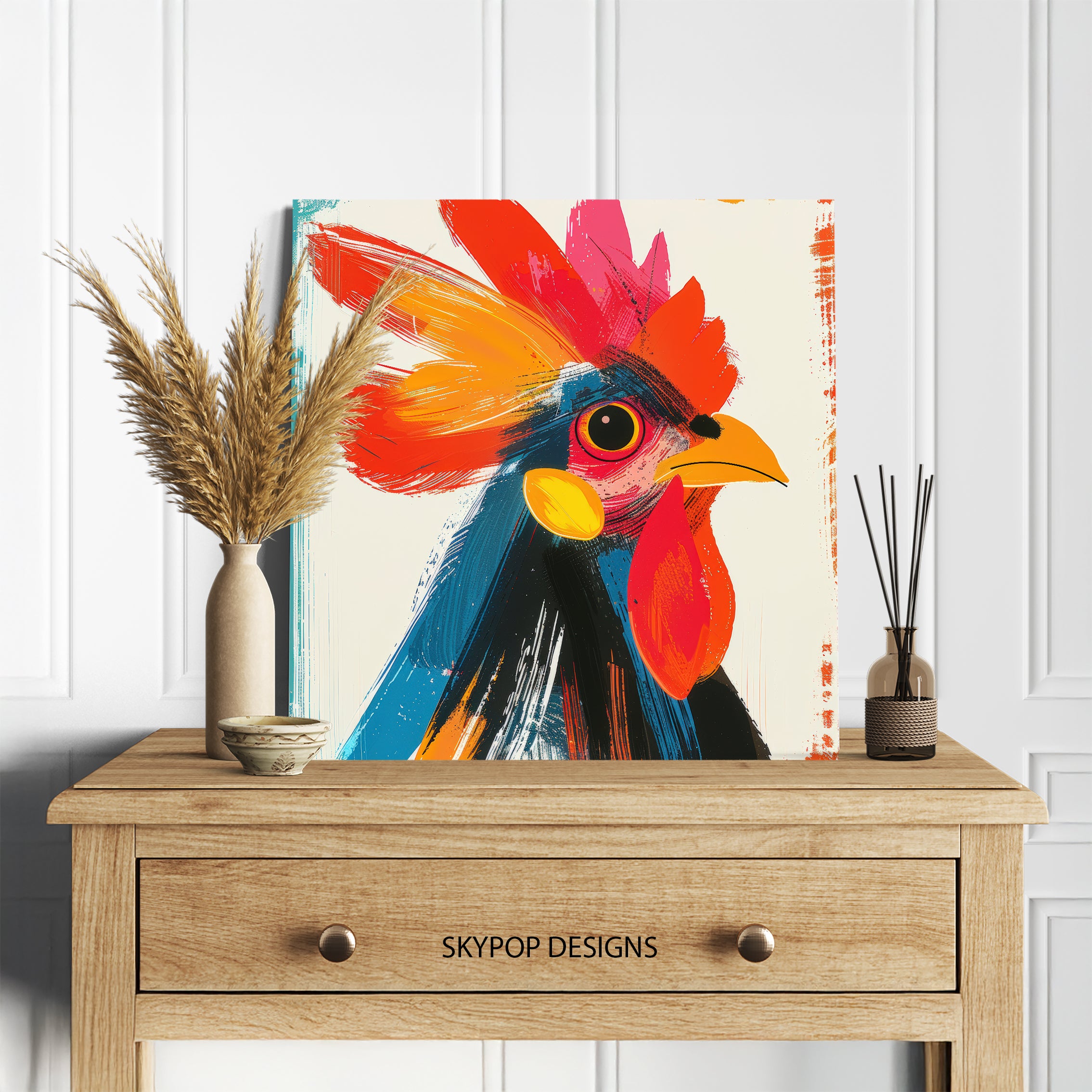 Keywords: Rooster wall art, pop art canvas, graffiti art print, abstract art decor, modern home decor, contemporary living room, bohemian charm, multicolor artwork, vibrant red yellow blue, kitchen wall art, office decor, entryway art, animal wall decor, canvas poster, splash art, art lovers gift, farmhouse decor, unique wall art, home interior design, statement piece, colorful art, textured canvas, living room art, kitchen decor, office wall art, entryway decor, artistic flair, vibrant colors, nature inspired art, creative home decor