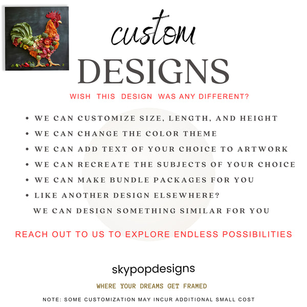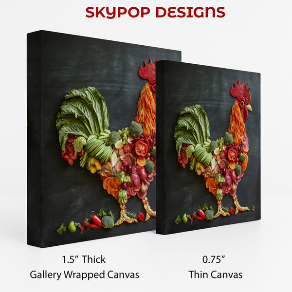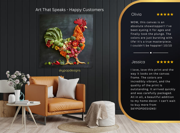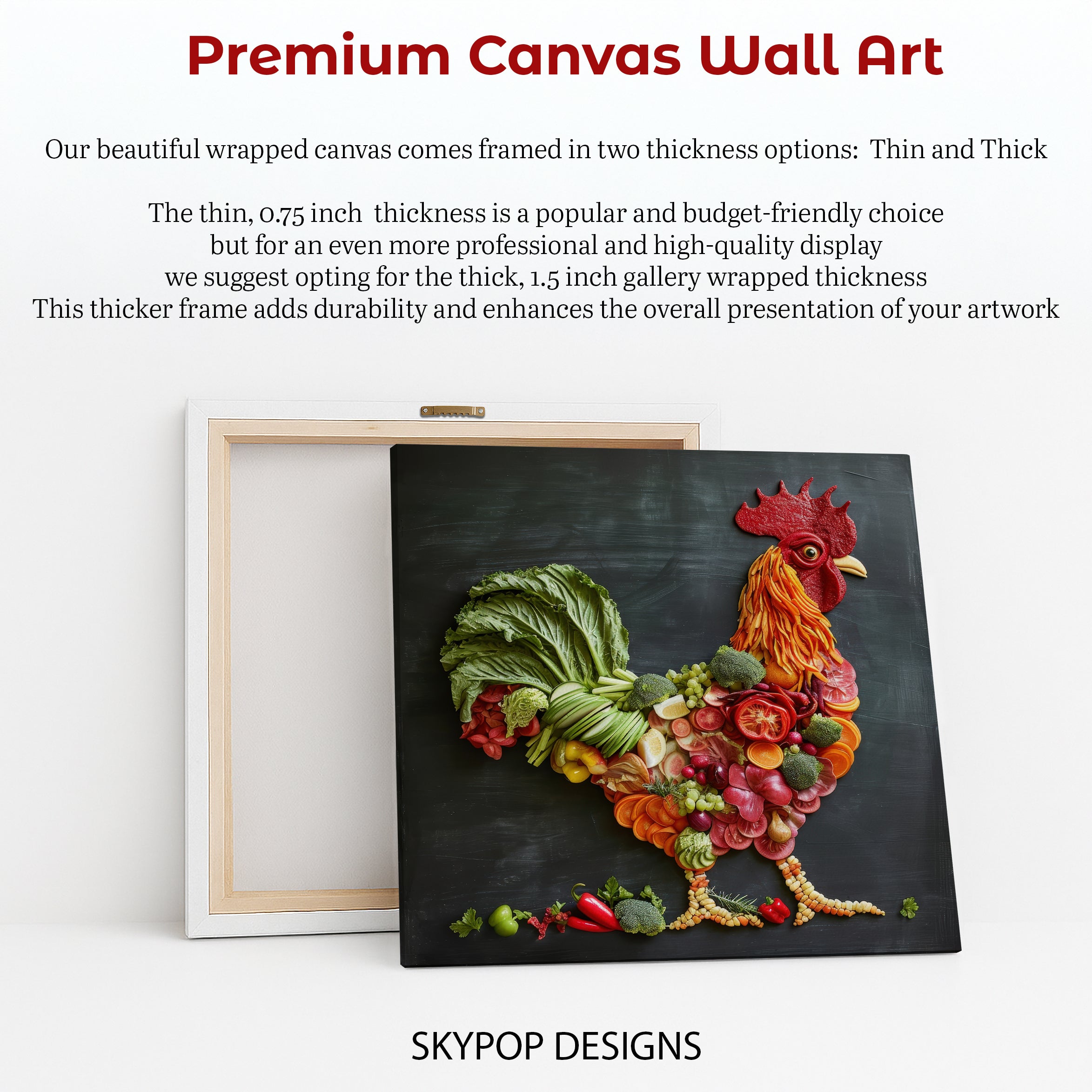 Keywords: rooster art, vegetable art, still life art, nature art, food art, kitchen art, dining room art, living room art, office art, multicolor art, green art, red art, yellow art, modern decor, contemporary decor, farmhouse decor, wall art, canvas art, poster art, home decor, kitchen decor, dining decor, living room decor, colorful art, vibrant art, organic art, healthy eating art, food lover gift, housewarming gift, birthday gift