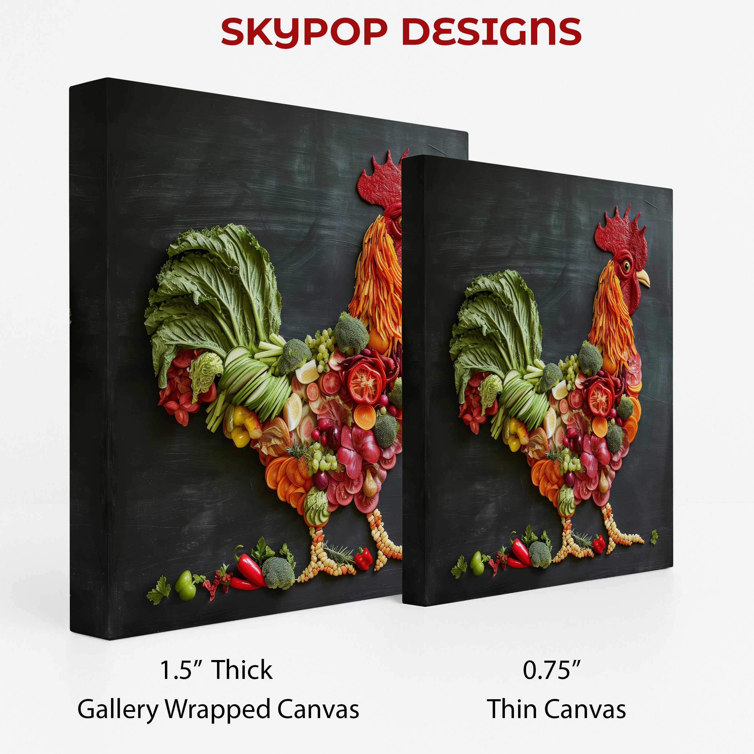 Rooster Vegetable Art, Canvas or Poster, Modern Farmhouse Decor, Kitchen Dining Room Wall Art, Green Red Yellow Multicolor