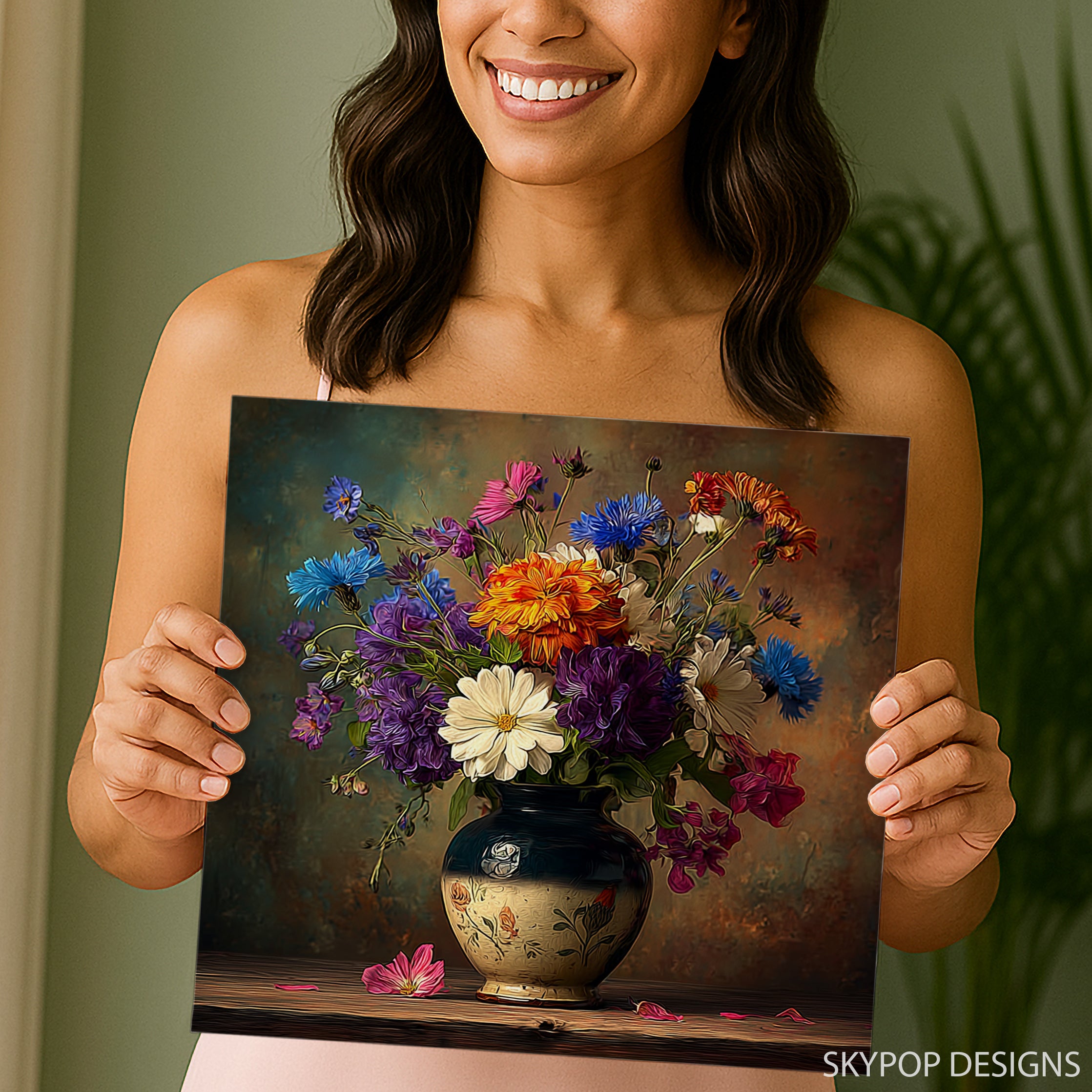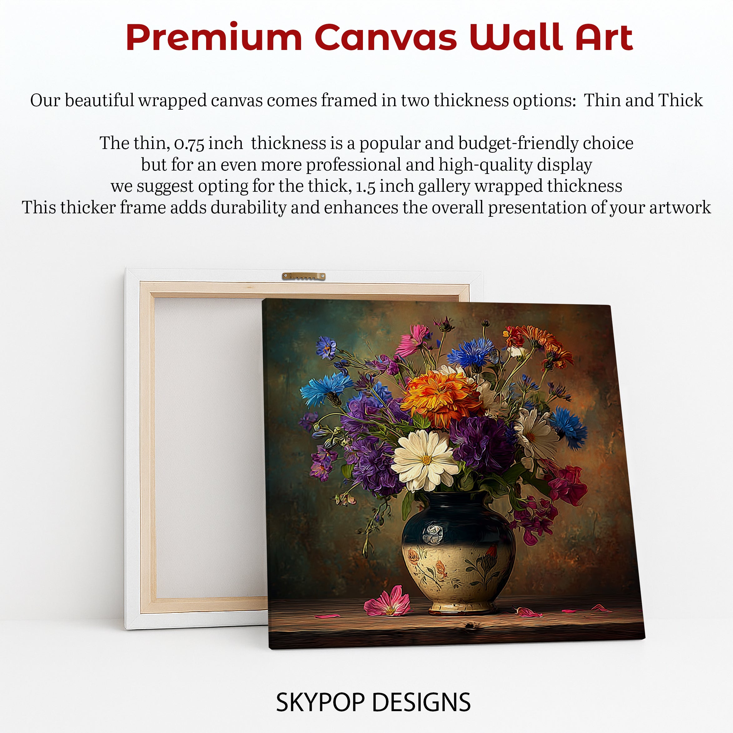 Keywords: Impressionism Art, Floral Art, Still Life Art, Traditional Decor, Farmhouse Decor, Rustic Decor, Dining Room Art, Living Room Art, Kitchen Decor, Bedroom Art, Multicolor Art, Brown Art, Green Floral Art, Blue Flower Painting, Vibrant Wildflowers, Bouquet Canvas Art, Nature Wall Art, Floral Vase Artwork, Rustic Floral Design, Timeless Wall Decor, Artistic Home Accent, Blooming Garden Art, Natural Elegance Decor, Classic Still Life, Joyful Wall Art, Serene Home Decor, Farmhouse Kitchen Art, Traditional Living Room, Housewarming Gift, Birthday Gift Ideas