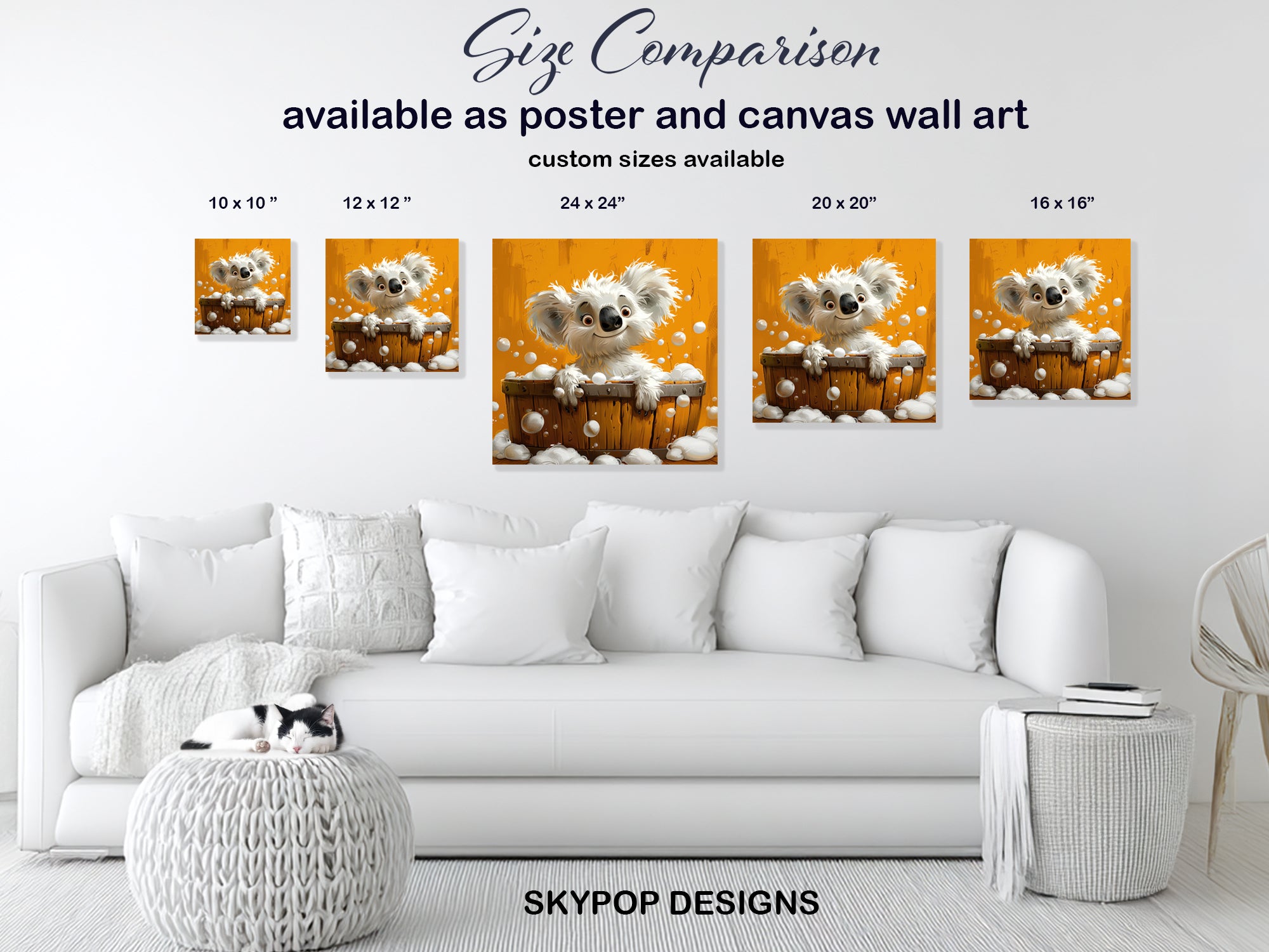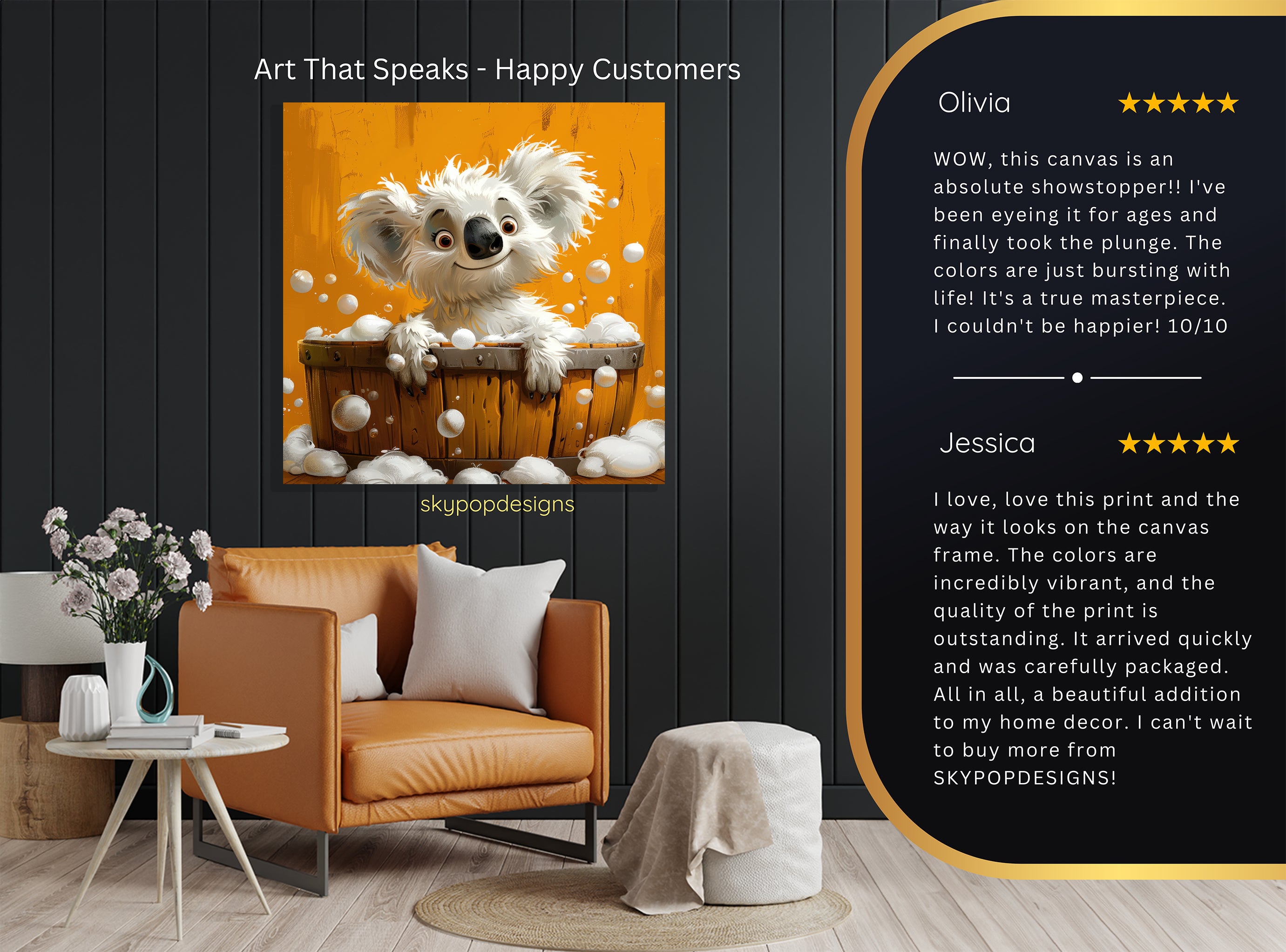 Keywords: Koala Art, Animal Art, Whimsical Art, Contemporary Art, Bohemian Decor, Farmhouse Decor, Modern Decor, Bathroom Decor, Children's Room Decor, Living Room Decor, Nursery Decor, Orange Art, White Art, Multicolor Art, Brown Art, Koala Poster, Koala Canvas Art, Animal Wall Art, Bath Time Art, Cute Animal Print, Whimsical Poster, Modern Wall Art, Farmhouse Wall Decor, Bohemian Wall Art, Kids Room Art, Nursery Wall Art, Gift for Animal Lover, Birthday Gift Idea, Housewarming Gift, Wall Decor