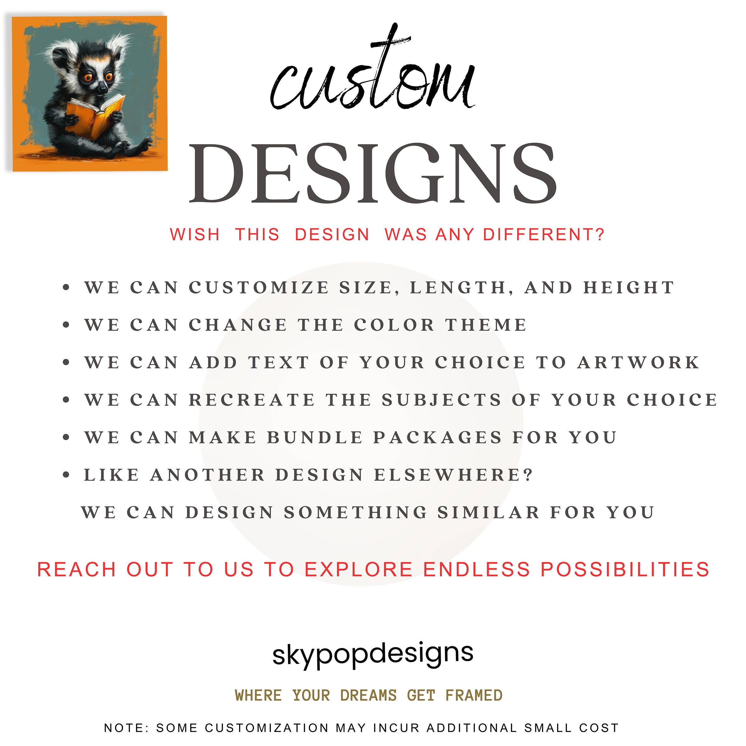 Keywords: Lemur Art, Reading Lemur, Animal Print, Whimsical Art, Contemporary Art, Bohemian Decor, Mid-Century Modern Decor, Living Room Art, Children's Room Decor, Bedroom Wall Art, Office Wall Decor, Teal Orange Black Art, Orange Teal Art, Animal Lover Gift, Book Lover Gift, Cute Animal Art, Canvas Wall Art, Framed Print, Home Decor, Wall Decor, Art Poster, Unique Wall Art, Playful Art, Charming Decor, Expressive Art, Joyful Art, Curiosity Art, Imaginative Art, Modern Art, Cozy Atmosphere