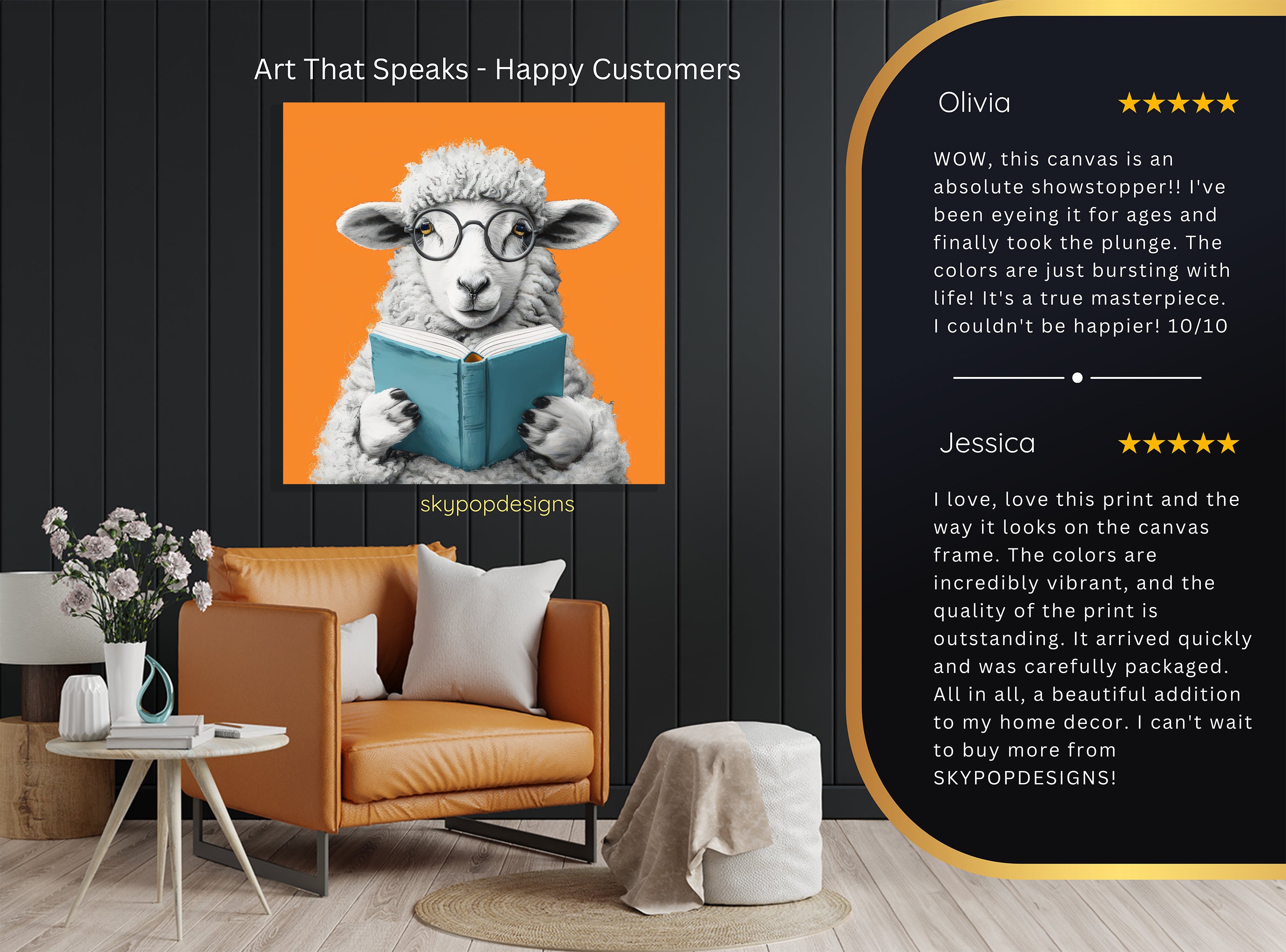Keywords: sheep art, reading sheep, book lover gift, whimsical art, animal canvas, modern decor, contemporary art, bohemian style, living room art, bedroom decor, office art, library decor, orange wall art, multicolor art, white and black art, intellectual art, intellectual sheep, sheep poster, wall art, canvas print, home decor, interior design, unique artwork, funny art, animal print, student gift, art for her, art for him, conversation starter, sophisticated decor