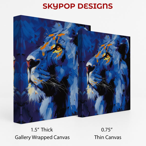 Transform your walls with this stunning Lion canvas wall art, a striking piece that captures the wild spirit of nature. This captivating abstract art showcases a majestic lion in a dynamic blend of blues and oranges, rendered with bold brushstrokes that create a sense of movement and power. Elevate your home decor with this unique poster that blends modern art with animal themes, perfect for adding a touch of sophistication and energy to any room. The vibrant blue hues evoke a sense of calm yet powerful presence, while the splashes of orange add warmth and intensity, making this canvas wall art a true statement piece. It's ideal for contemporary living rooms, modern bedrooms, or even a stylish office space, bringing a touch of the wild indoors. This poster is also a fantastic gift for any lion lover or art enthusiast, suitable for birthdays, holidays, or housewarmings. The textured finish and rich colors of this abstract lion art will surely spark conversation and admiration. Showcase your love for animals and art with this eye-catching canvas print that's sure to enhance your interior design. Add a vibrant yet sophisticated touch to your home with this unique wall art. Make a bold statement and infuse your space with the powerful presence of this majestic lion canvas artwork today.