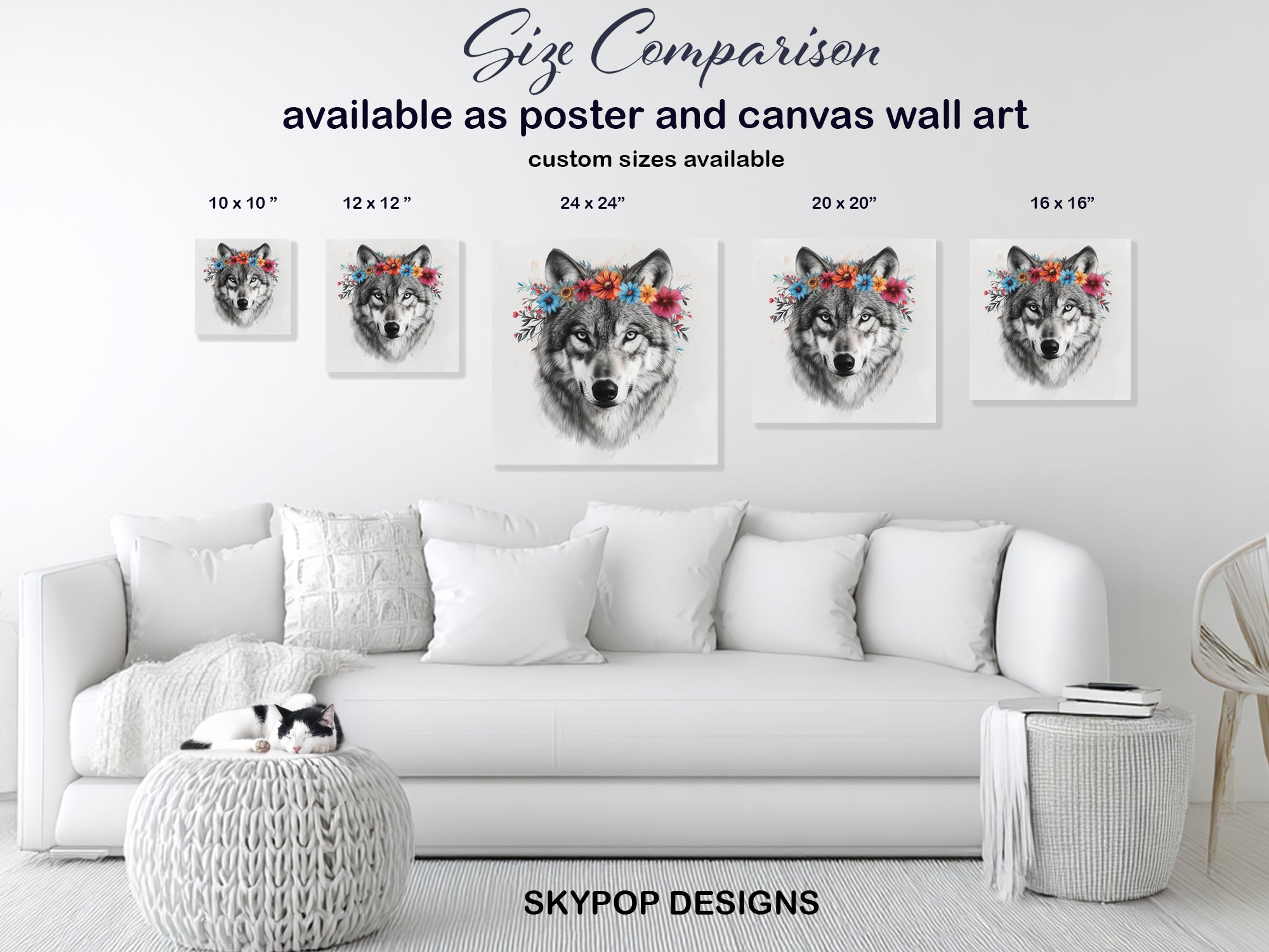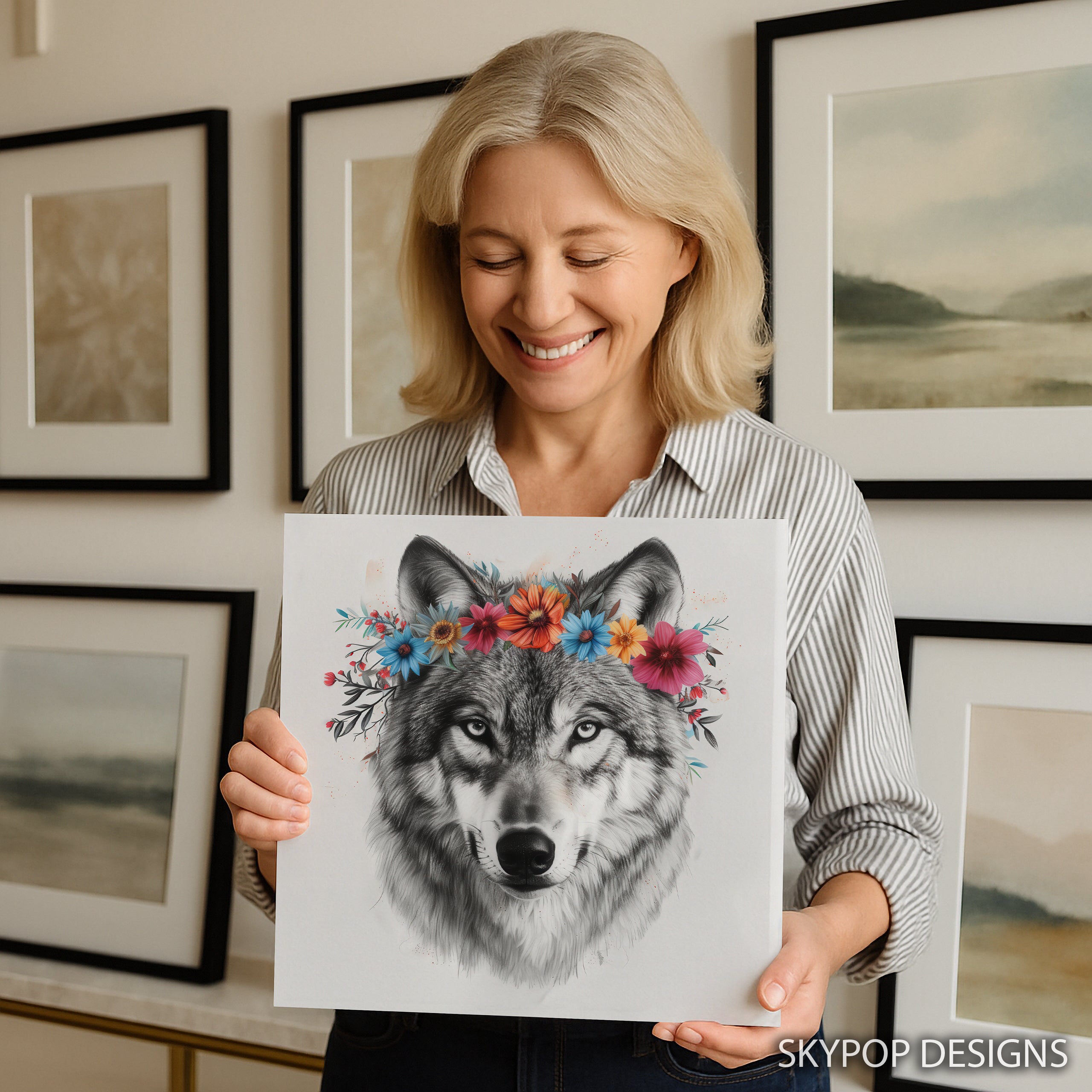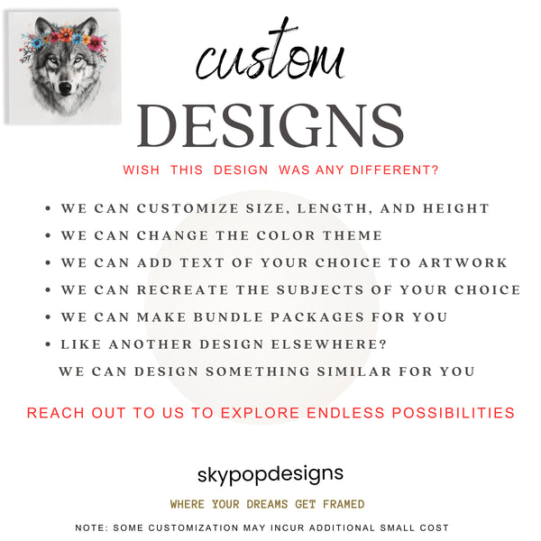 Keywords: Wolf Wall Art, Majestic Wolf Art, Floral Crown Wolf, Nature Art, Animal Art, Figurative Art, Bohemian Decor, Rustic Decor, Farmhouse Decor, Living Room Art, Bedroom Wall Art, Entryway Decor, Dining Room Art, Multicolor Wall Art, Grey Wolf Art, White Wolf Art, Black Wolf Art, Wolf Poster, Canvas Wall Art, Wildlife Art, Nature Lover Gift, Animal Art Collector, Housewarming Gift, Birthday Gift, Botanical Art, Wilderness Art, Home Decor, Wall Decor, Unique Wall Art, Artistic Charm