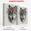 Wolf Floral Crown Art, Canvas or Poster, Rustic Farmhouse Decor, Living Room Bedroom Entryway Dining Room Art, Multicolor Grey White Black