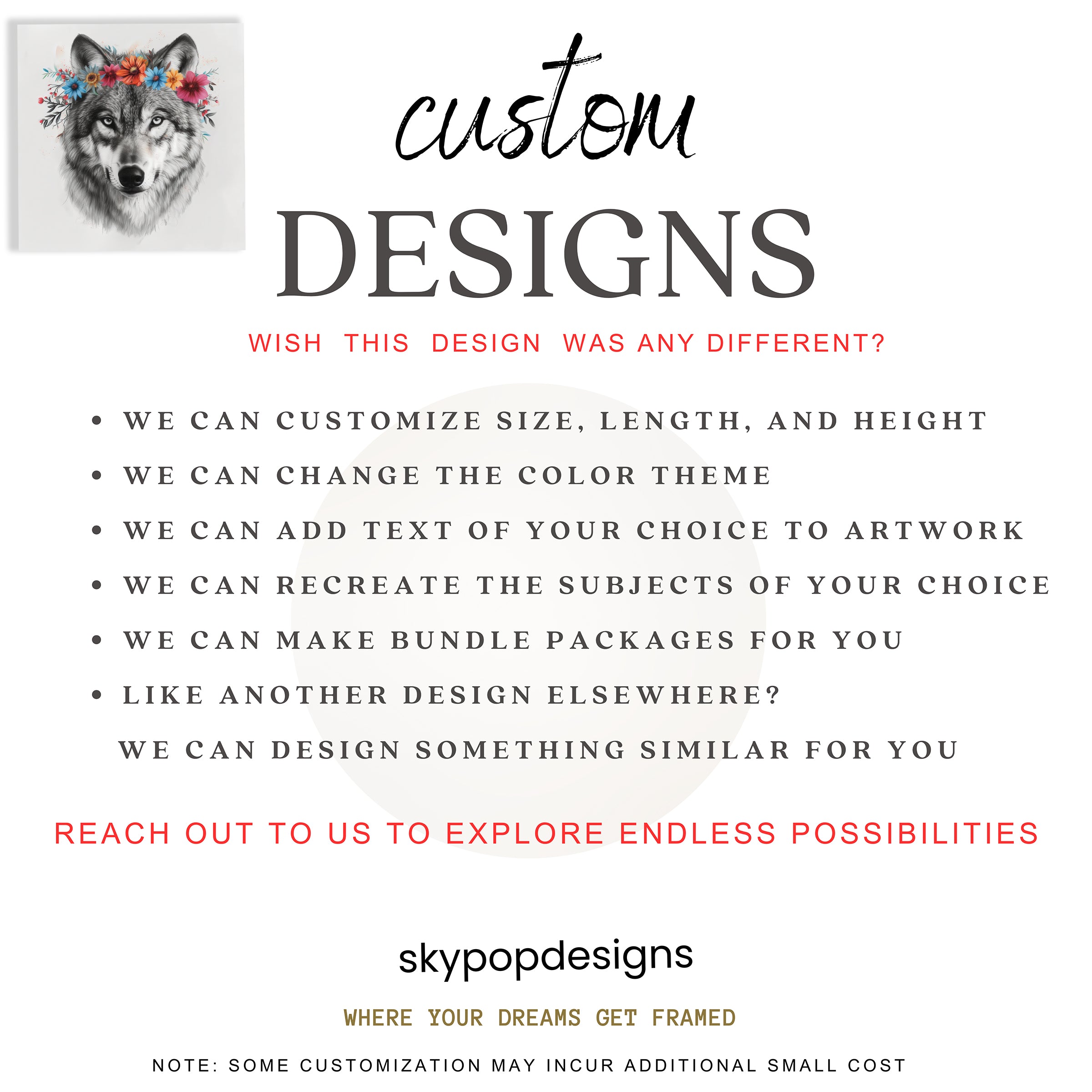 Looking for a custom design, or do you love a particular design but need it in a different size or orientation? Perhaps you've found a design elsewhere and wish for us to create something similar for you? Drop us a message! We're dedicated to meeting your needs and will work closely with you to ensure your vision comes to life.
