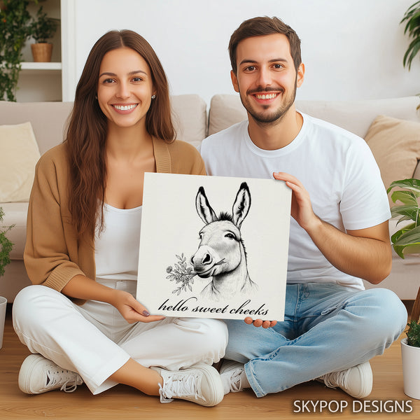 Donkey with Flowers Art, Poster or Canvas, Animal Farmhouse Decor, Living Room Bedroom Kitchen Wall Art, Black and White Grey White Art