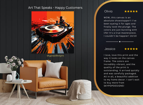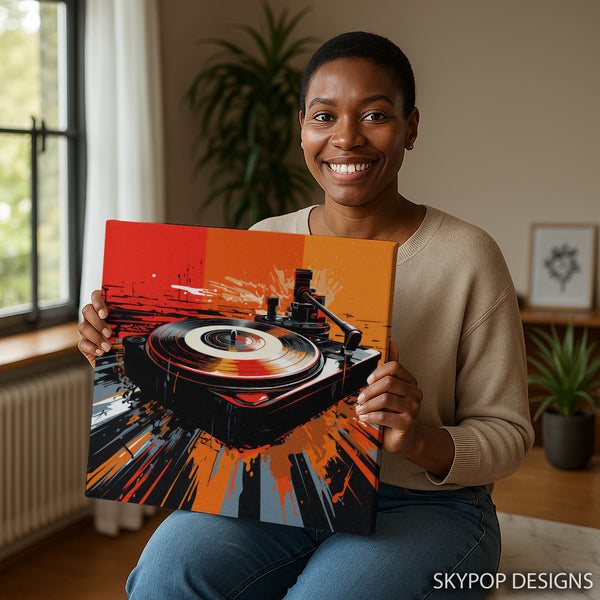 Keywords: Music Art, Graffiti Art, Pop Art, Turntable Art, Canvas Wall Art, DJ Decor, Home Decor, Living Room Art, Office Decor, Game Room Art, Home Theater Decor, Modern Decor, Contemporary Decor, Mid-Century Modern Decor, Abstract Art, Wall Poster, Music Lover Gift, DJ Gift, Unique Wall Decor, Sound Art, Rhythm Art, Colorful Art, Black Art, Orange Art, Red Art, Multicolor Art, Exciting Decor, Creative Decor, Music Studio Vibe, Bold Lines