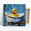 Keywords: Canvas Wall Art, Rubber Duck Art, Bath Time Decor, Yellow Duck Painting, Blue Bath Art, Children's Room Decor, Nursery Wall Art, Bathroom Art, Whimsical Animal Art, Impressionism Style, Bohemian Decor, Modern Bathroom Decor, Kids Room Art, Playful Wall Art, Bright Yellow Art, Cheerful Decor, Bubble Bath Art, Ducks in Bathtub, Animal Themed Art, Entryway Art, Housewarming Gift, Birthday Gift Art, Holiday Gift Decor, Textured Canvas Print, Quality Wall Print, Vibrant Home Decor, Happiness Art, Childlike Wonder Decor, Relaxing Bath Art, Unique Wall Art