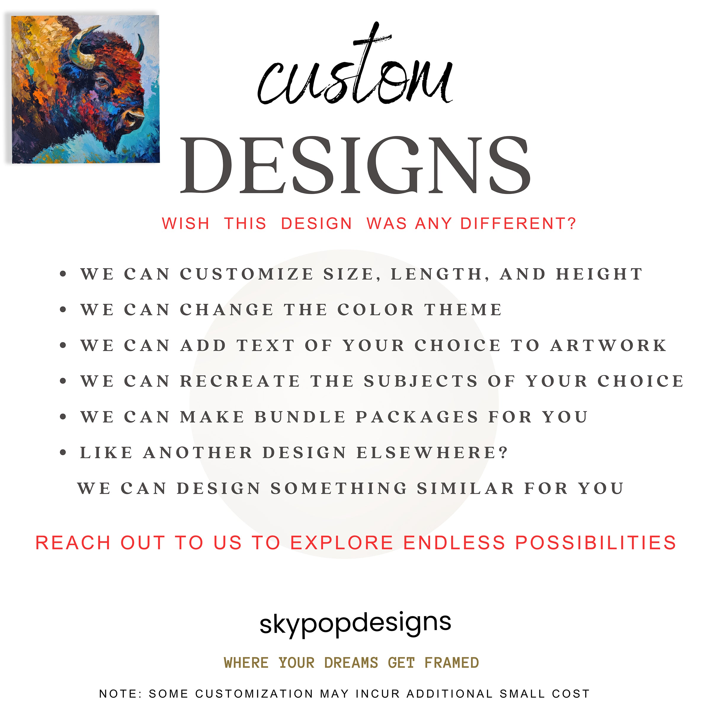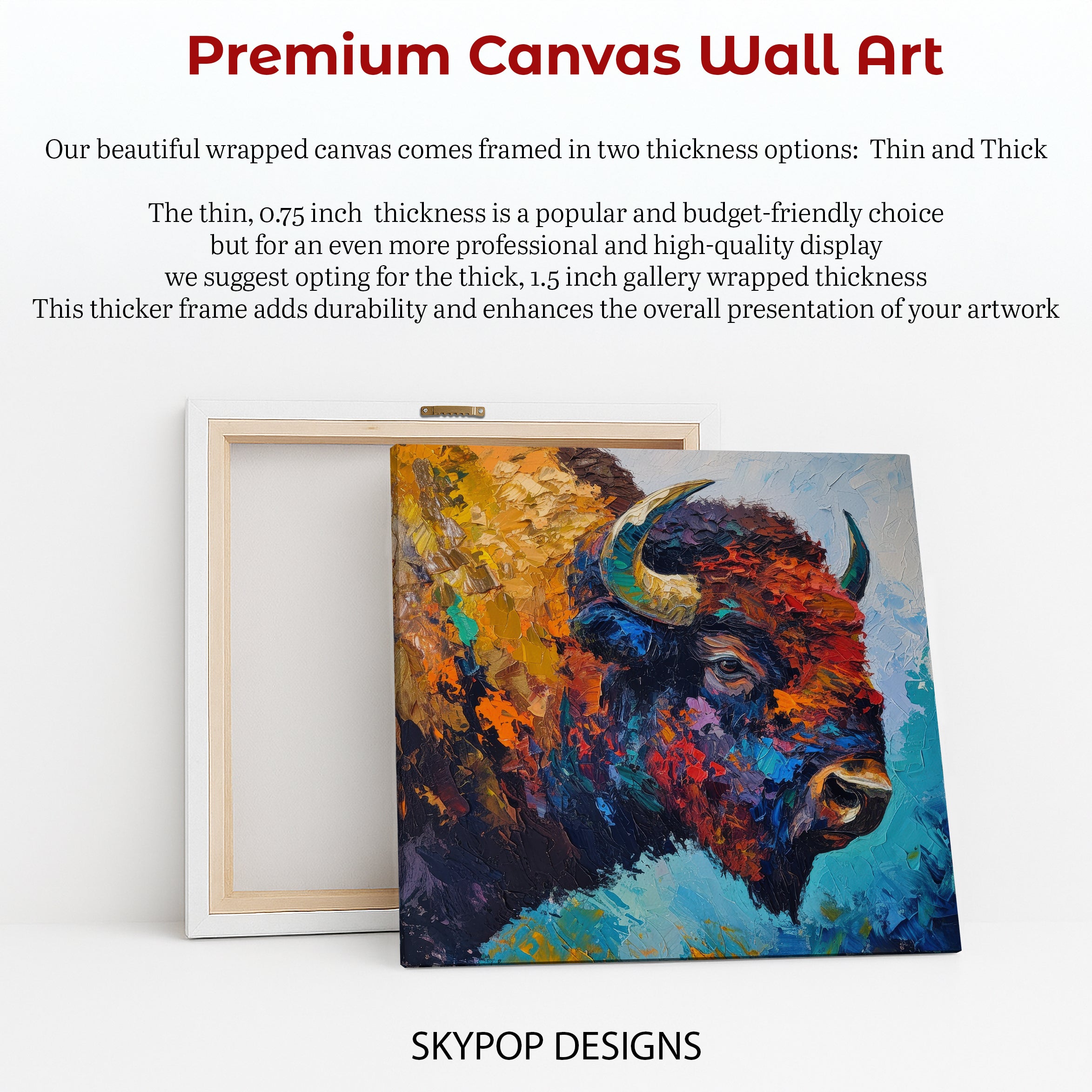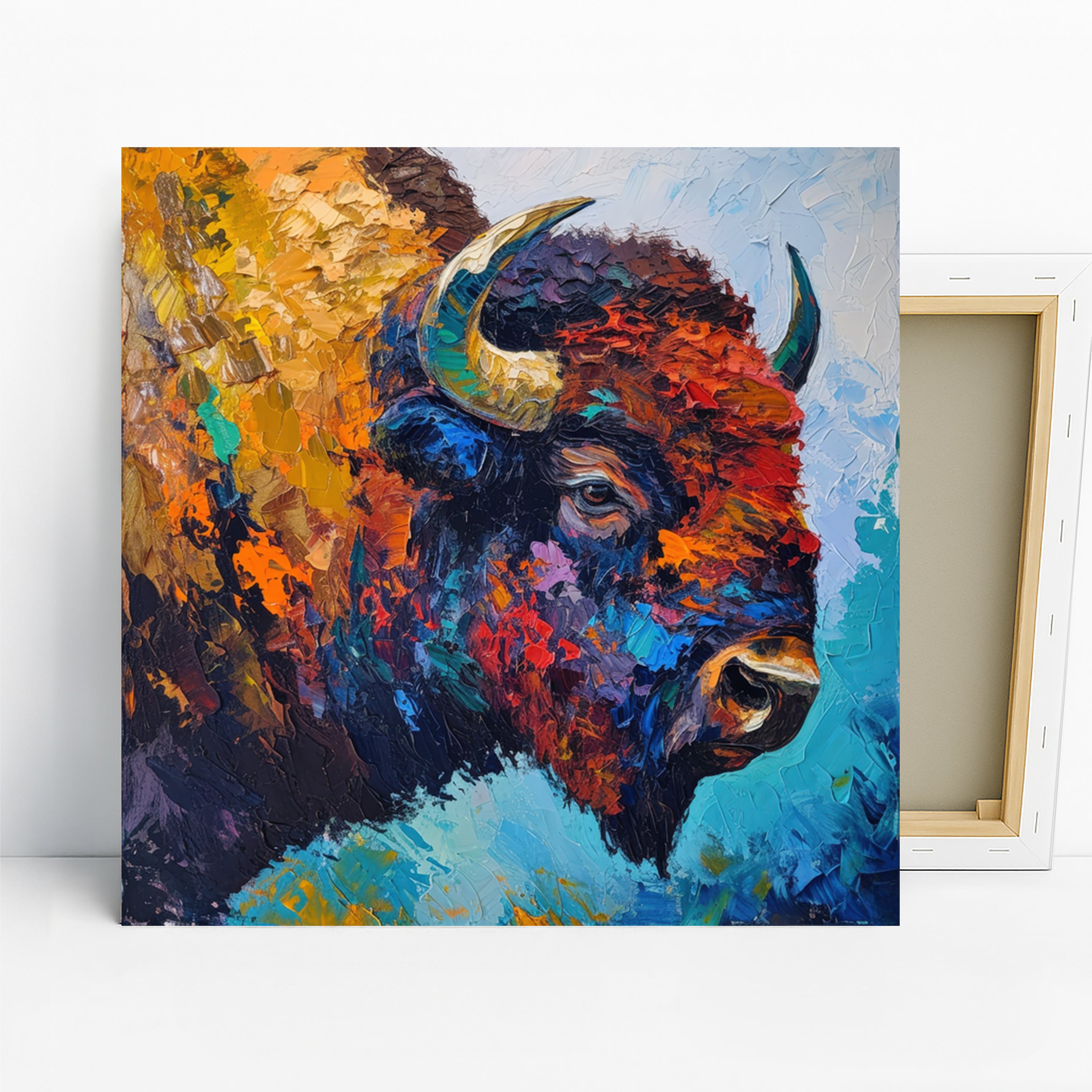 Keywords: Bison Wall Art, Canvas Print, Abstract Art, Animal Art, Contemporary Art, Modern Decor, Bohemian Decor, Living Room Art, Bedroom Decor, Office Wall Art, Entryway Decor, Multicolor Art, Blue Art, Orange Art, Brown Art, Bison Power, Impressionist Art, Textured Brushstrokes, Wildlife Art, Nature Artwork, Thick Canvas, Home Decor, Statement Piece, Artistic Accent, Housewarming Gift, Gift for Animal Lovers, Vibrant Colors, Dynamic Art, Untamed Spirit, Wall Poster