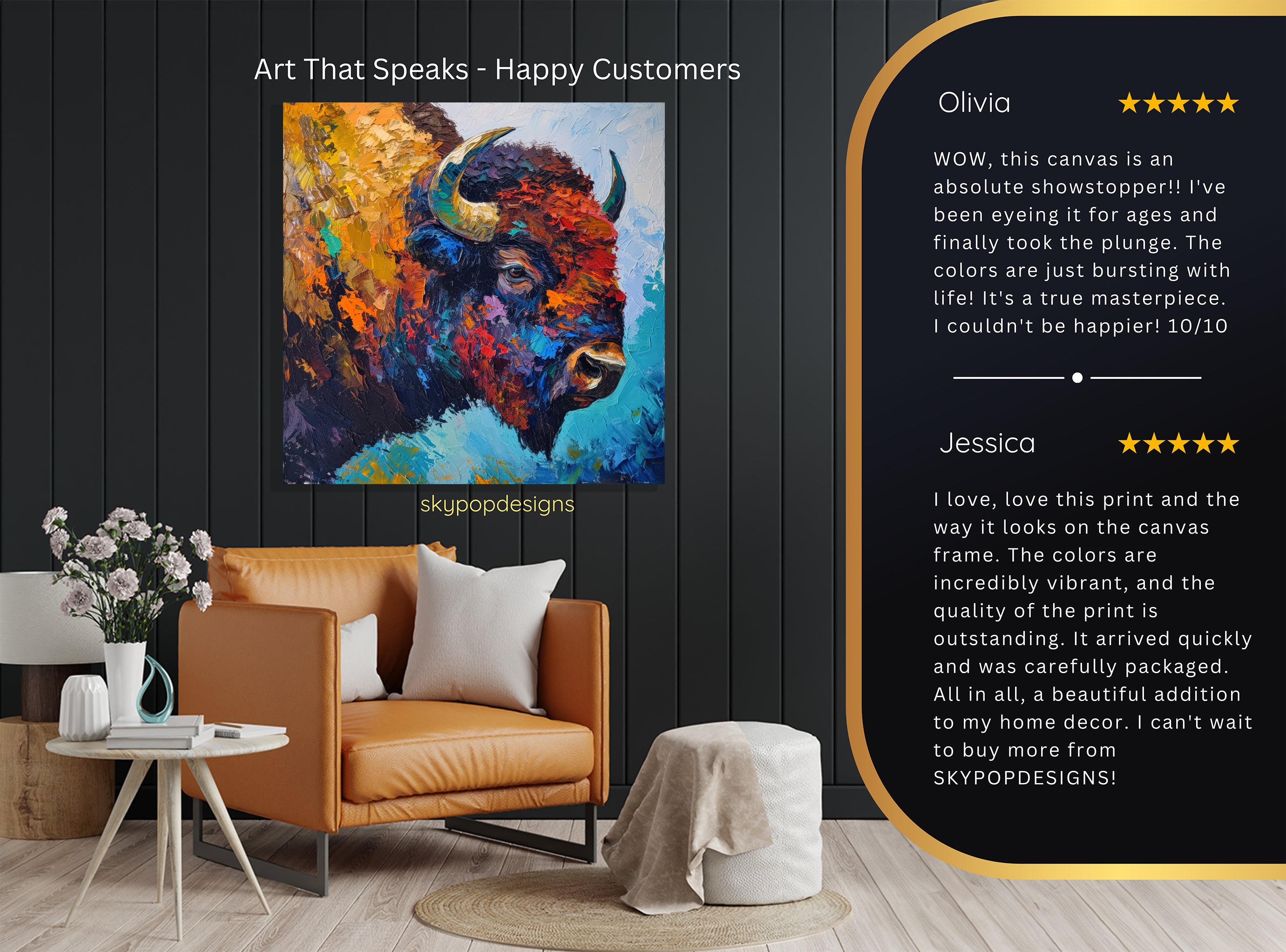 At SKYPOPDESIGNS, we specialize in high-quality canvas and poster prints designed to bring sophistication and style to your space. Please note that our designs are not created with 3D textures or as original oil, acrylic, or watercolor paintings; they are instead HD reproductions of original artwork. This approach allows us to offer these visually stunning pieces at competitive prices, ensuring you receive top-tier, maintenance-free art that's easy to enjoy.