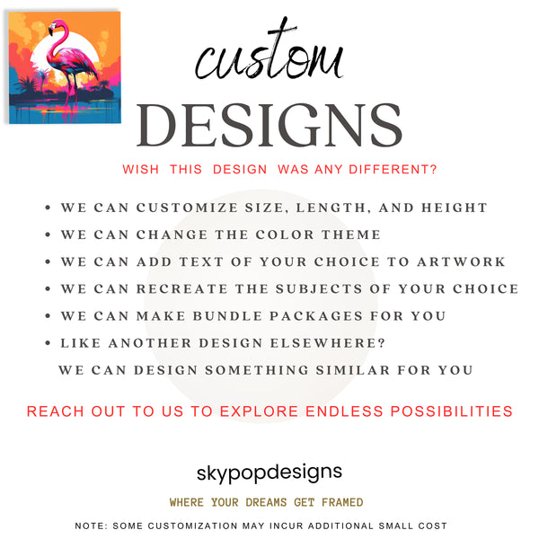 Welcome to SKYPOPDESIGNS, where we blend art, precision, and affordability. Our collection showcases stunning, high-quality images meticulously printed on canvas or posters, ensuring a flawless and consistent finish that captures the essence of various art styles.