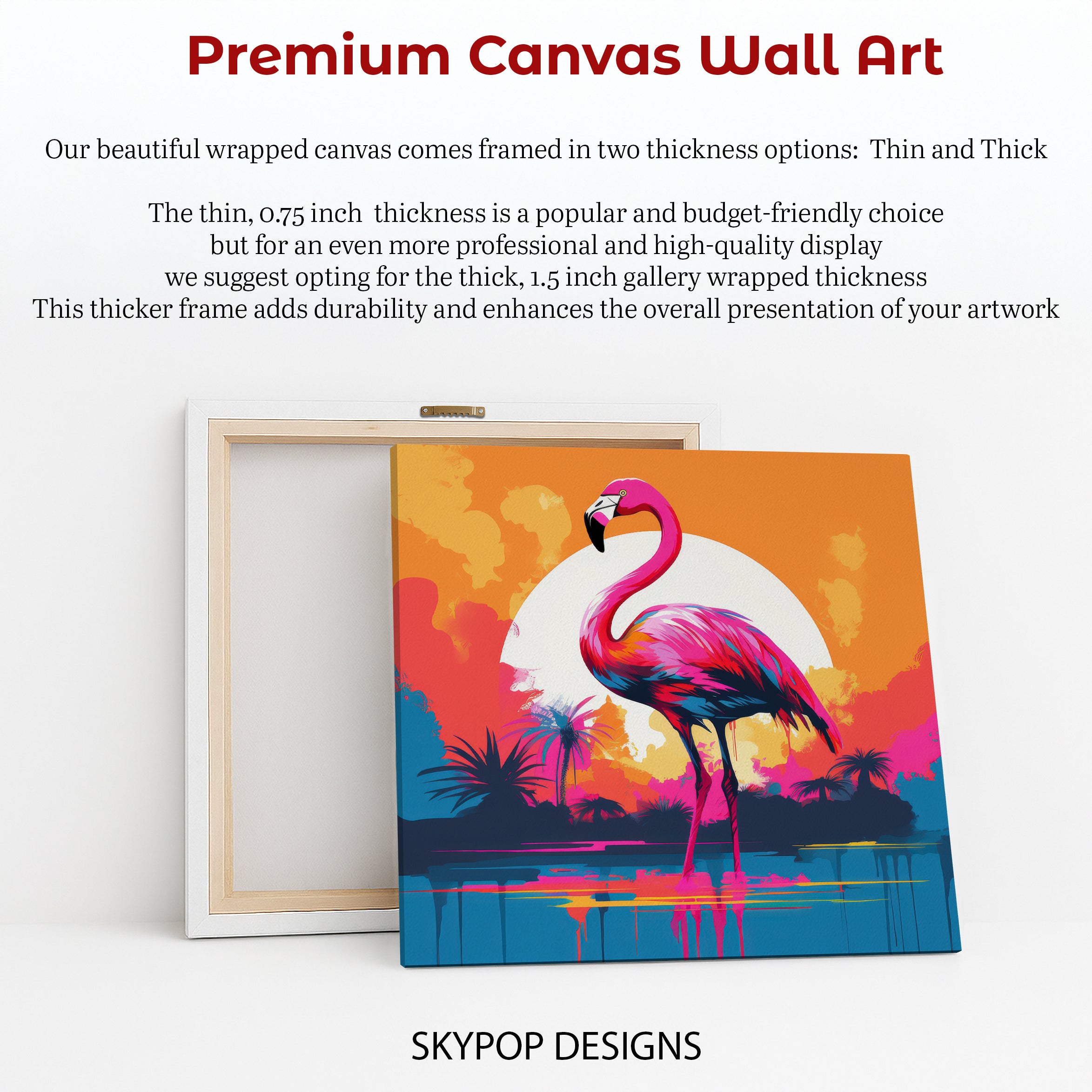 Keywords: Flamingo Wall Art,Tropical Sunset Art,Canvas Print,Poster Art,Pop Art Decor,Nature Art,Contemporary Art,Coastal Decor,Bohemian Living Room,Modern Bedroom,Multicolor Art,Pink Flamingo,Orange Sunset,Blue Accents,Living Room Art,Bedroom Decor,Dining Room Art,Entryway Art,Home Decor,Wall Decor,Interior Design,Statement Piece,Housewarming Gift,Unique Wall Art,Vibrant Colors,Beach House Decor,Tropical Vibes,Animal Art,Flamingo Poster,Art for Walls