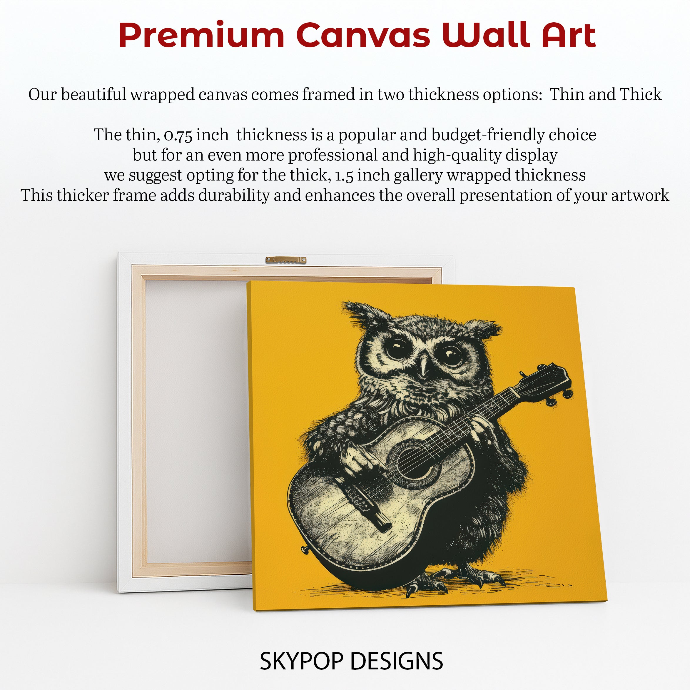 Keywords: Whimsical Art, Animal Art, Retro Art, Bohemian Decor, Contemporary Decor, Modern Decor, Living Room Art, Bedroom Decor, Office Wall Art, Music Room Decor, Yellow Art, Black and White Art, Multicolor Art, Owl Art, Guitar Art, Wall Canvas, Canvas Print, Poster Art, Animal Wall Decor, Music Lover Gift, Birthday Gift, Housewarming Gift, Holiday Gift, Quirky Decor, Unique Wall Art, Creative Art, Playful Design, Artistic Flair, Music Theme, Owl Gifts