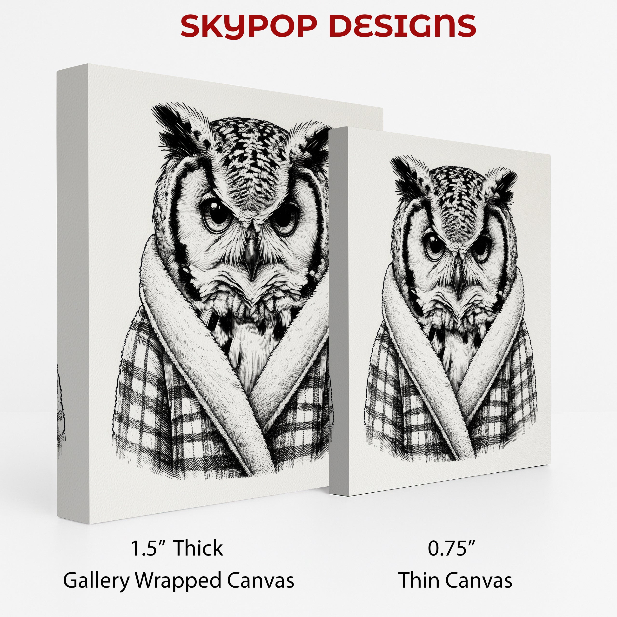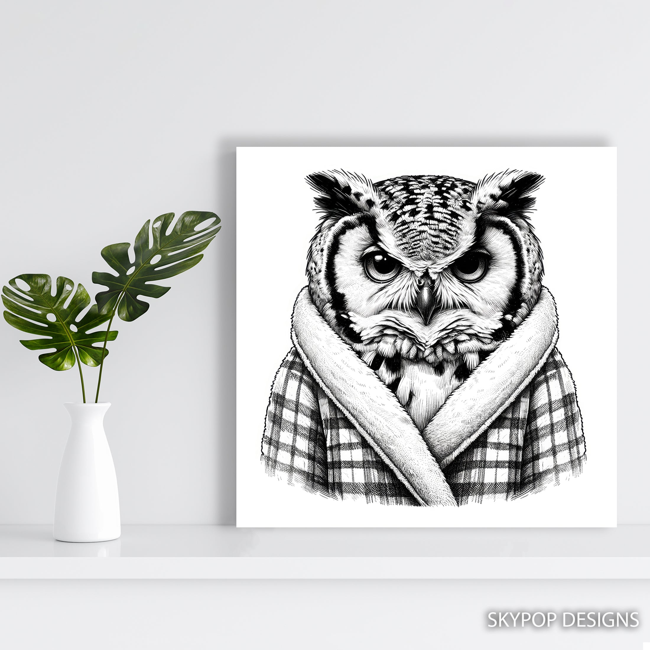 Keywords: Owl Wall Art, Canvas Art, Black and White Art, Modern Decor, Minimalist Art, Farmhouse Decor, Animal Art, Nature Art, Contemporary Art, Living Room Art, Office Wall Art, Bedroom Decor, Game Room Art, Dapper Owl Art, Plaid Robe Owl, Sophisticated Humor, Whimsical Art, Bird Lover Gift, Owl Enthusiast, Housewarming Gift, Birthday Gift, Unique Wall Decor, Canvas Print, Wall Poster, Inspirational Art, Home Decor, Interior Design, Living Room Decor, Bedroom Art, Accent Art