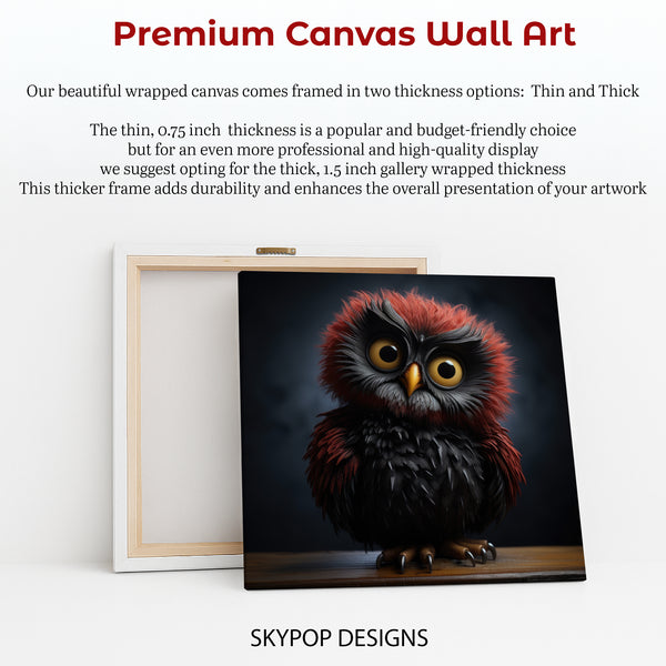 Keywords: Owl Wall Art, Canvas Wall Art, Animal Art, Whimsical Art, Contemporary Art, Modern Decor, Minimalist Decor, Bohemian Decor, Living Room Wall Art, Bedroom Art, Office Wall Decor, Kids Room Art, Black And Red Art, Yellow Eyes Art, Gold Accents, Fiery Feathered Friend, Fantasy Owl, Unique Wall Art, Statement Piece, Home Decor Art, Wall Art Print, Bird Lover Gift, Owl Enthusiast Gift, Creative Decor, Inspiring Art, Dramatic Colors, High Quality Print, Eye-Catching Art, Wild Beauty Art, Magical Owl Poster