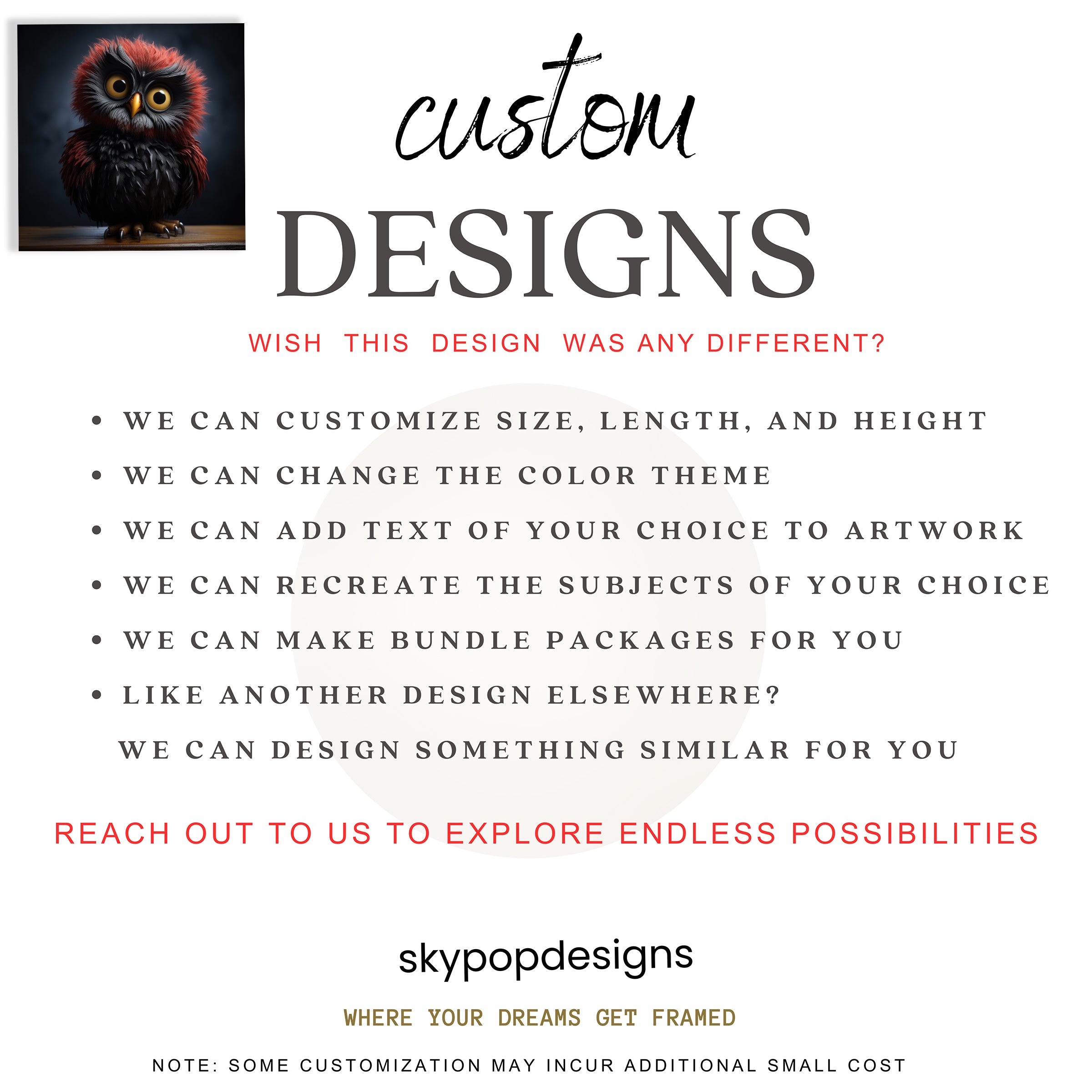 Looking for a custom design, or do you love a particular design but need it in a different size or orientation? Perhaps you've found a design elsewhere and wish for us to create something similar for you? Drop us a message! We're dedicated to meeting your needs and will work closely with you to ensure your vision comes to life.