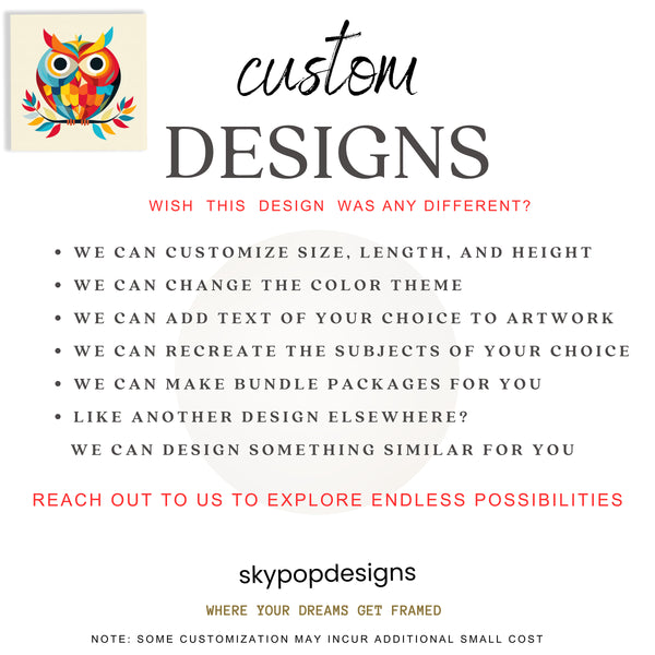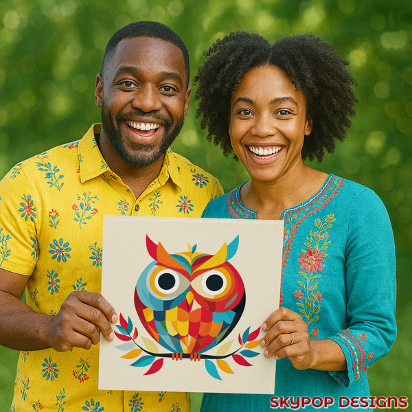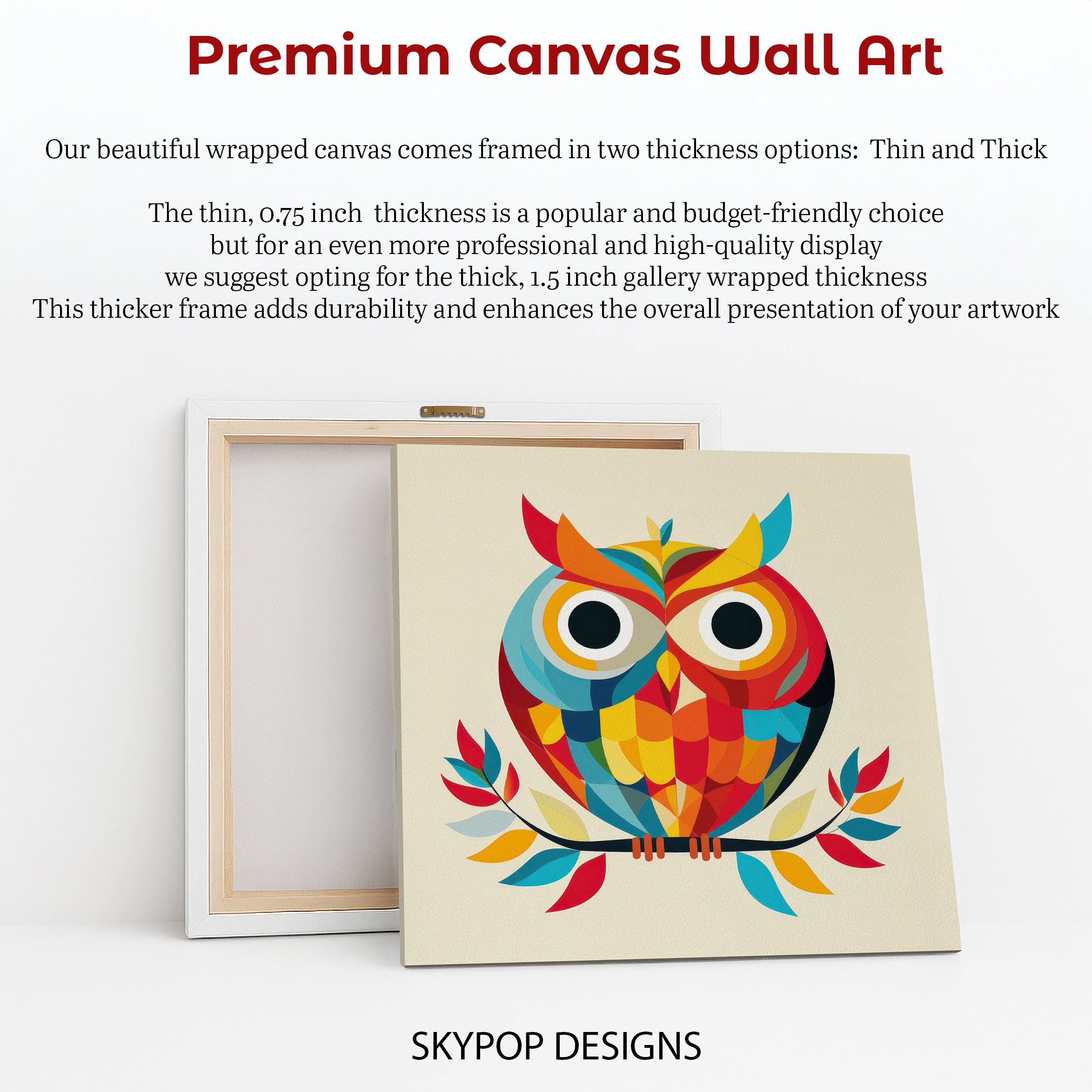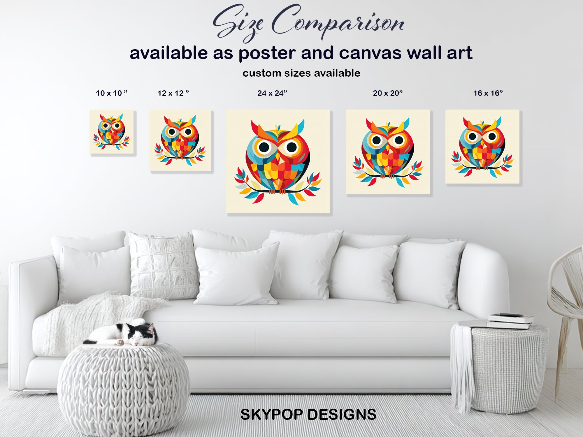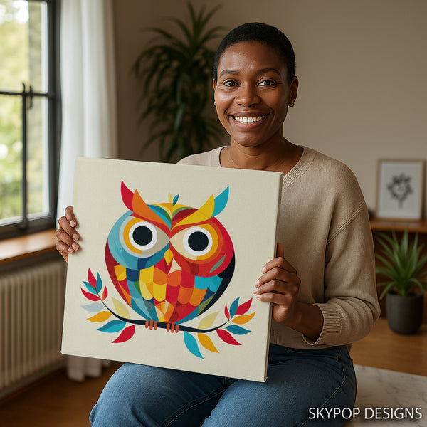 Instantly elevate your home decor with this striking owl canvas wall art. This vibrant poster showcases a contemporary geometric owl, capturing attention with its bold lines and vivid multicolor palette. Perfect for a modern living room or a cozy bohemian bedroom, this unique canvas wall art brings a sense of whimsy and sophistication to any space. The owl, a symbol of wisdom, is rendered in a captivating abstract style, featuring a playful arrangement of reds, blues, yellows, and oranges that pop against the neutral background. This cheerful owl poster is also an ideal addition to a child's room or an inspiring piece for an office space. The clean, graphic design of this canvas art piece complements a variety of decor styles, from minimalist to eclectic. It's not just wall art; it's a conversation starter designed to spread joy and add a splash of personality. This high-quality print ensures the colors remain vivid and the details sharp, making it a lasting addition to your art collection. Whether you're looking to refresh your wall decor or searching for the perfect gift for a nature lover or art enthusiast, this owl artwork delivers. Transform your interior with this eye-catching piece that celebrates the beauty of nature through a modern artistic lens. Make your walls more engaging with this stunning owl canvas wall art today.
