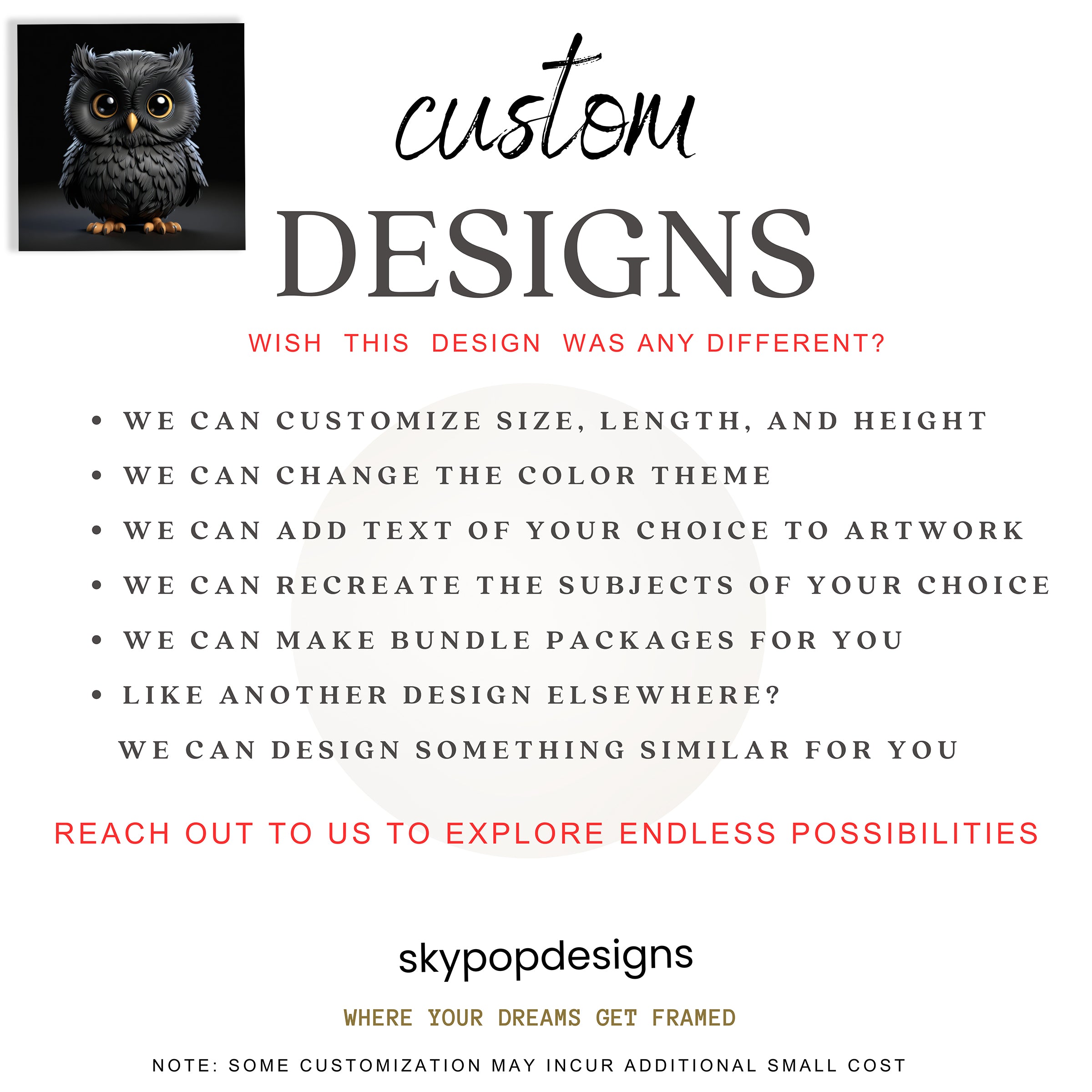 Looking for a custom design, or do you love a particular design but need it in a different size or orientation? Perhaps you've found a design elsewhere and wish for us to create something similar for you? Drop us a message! We're dedicated to meeting your needs and will work closely with you to ensure your vision comes to life.