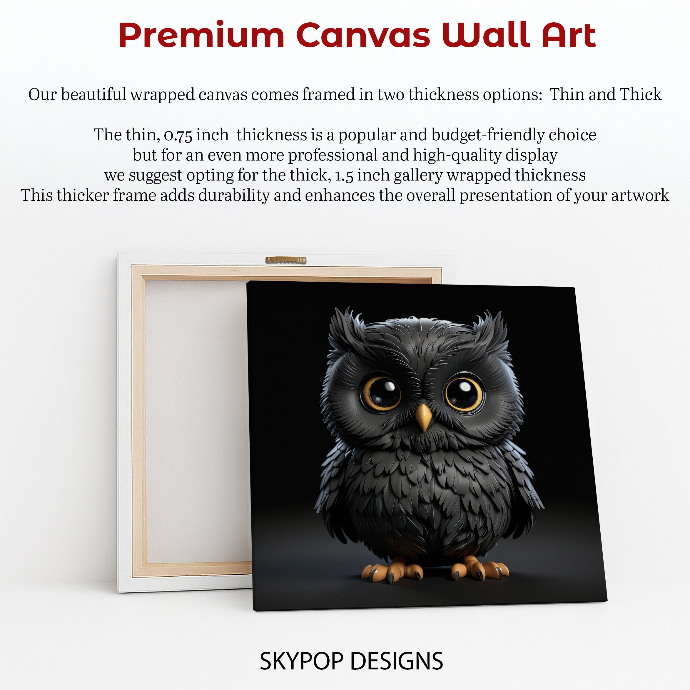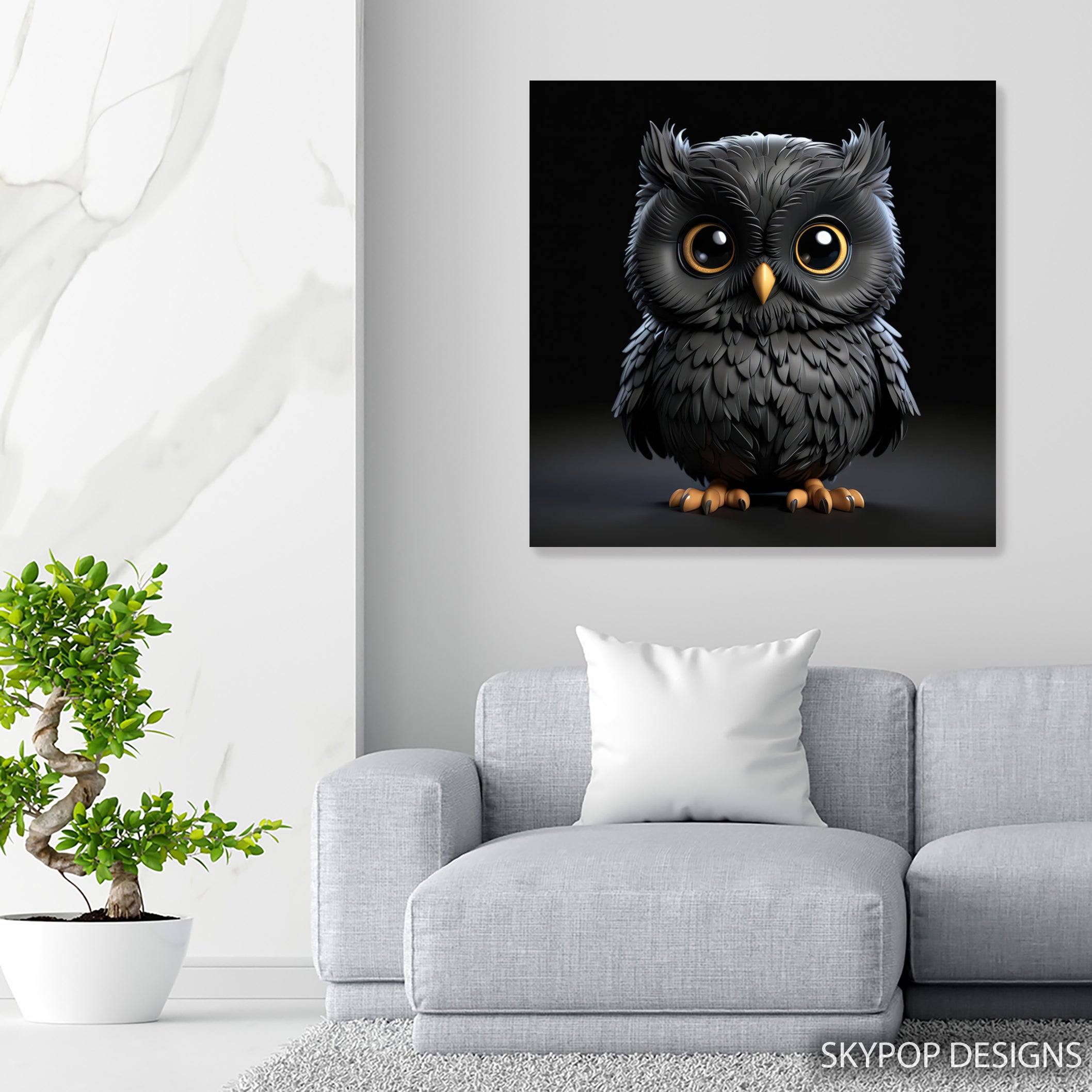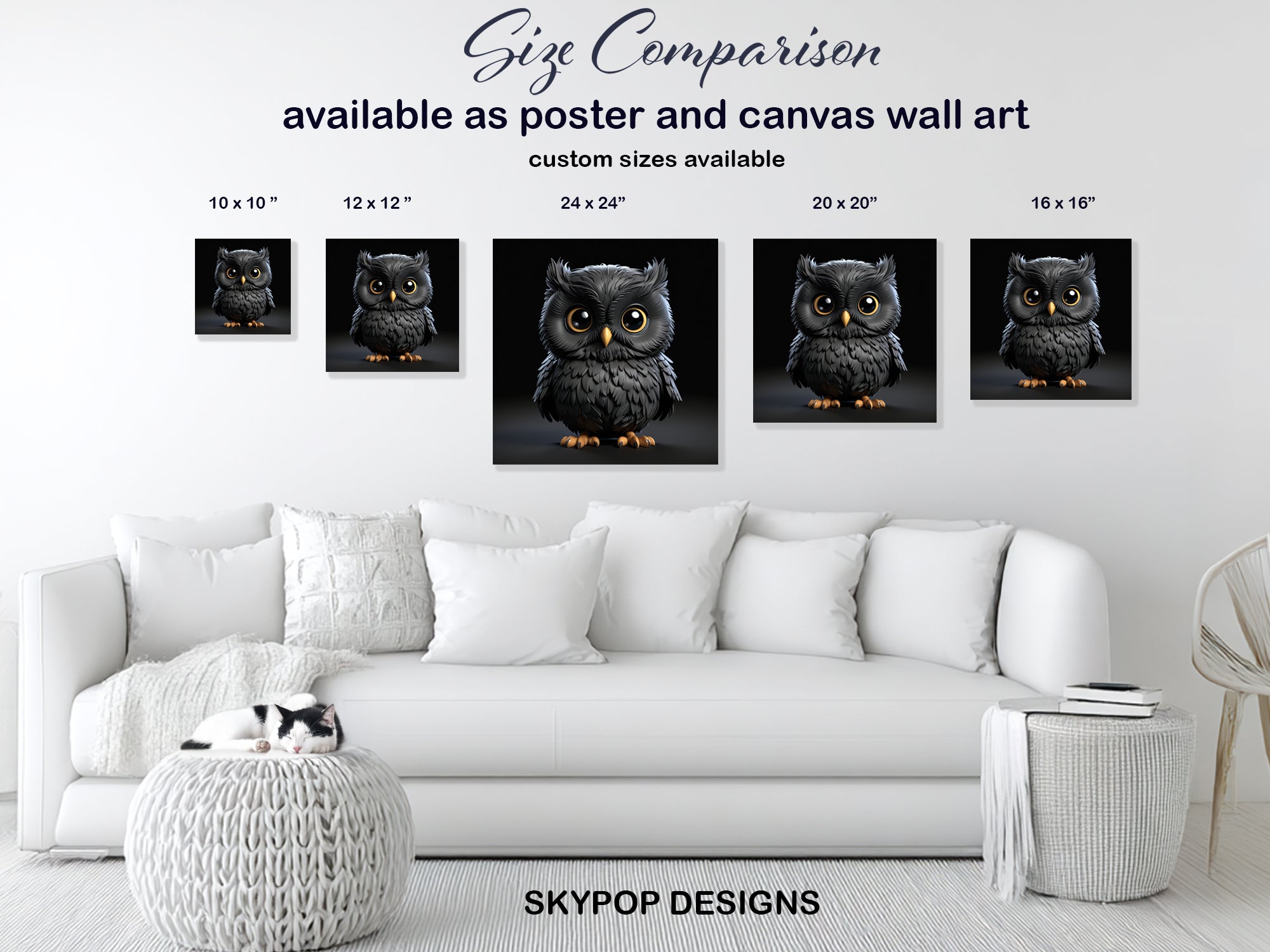 Keywords: black owl art, canvas wall art, animal art, whimsical art, contemporary art, modern decor, minimalist decor, scandinavian decor, living room art, bedroom decor, children's room art, office wall art, black and gold art, owl poster, wildlife art, home decor, interior design, statement piece, elegant art, enchanting art, unique wall art, nature inspired art, animal print, nocturnal beauty, owl gifts, art for wildlife lovers, wall decor ideas, room transformation, decorative art, art prints