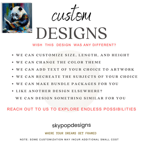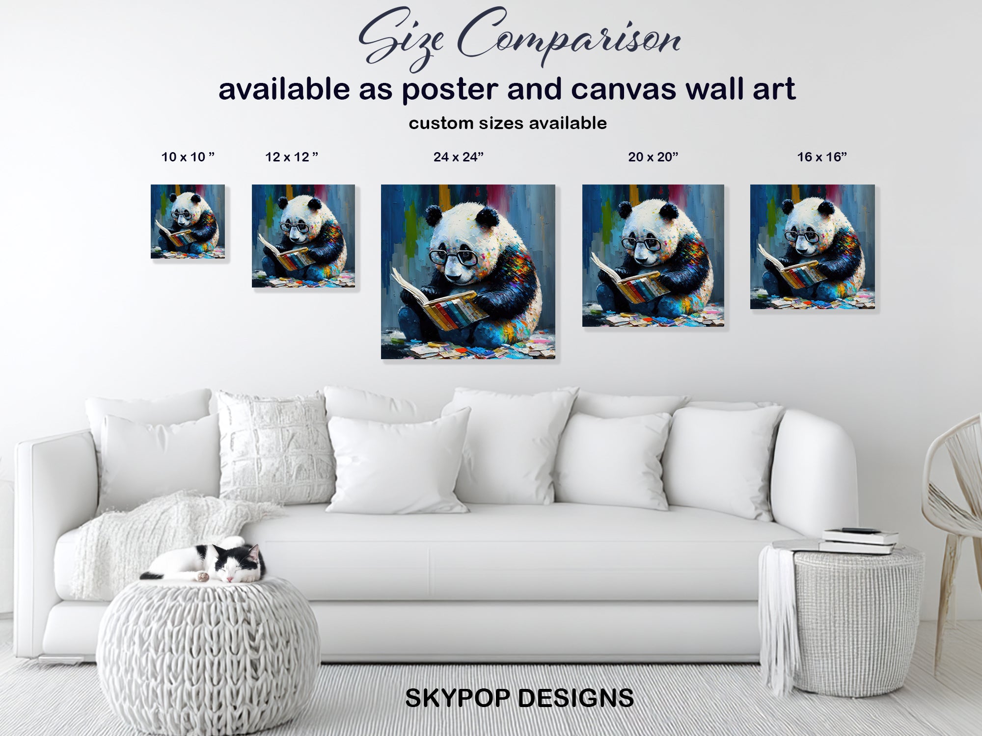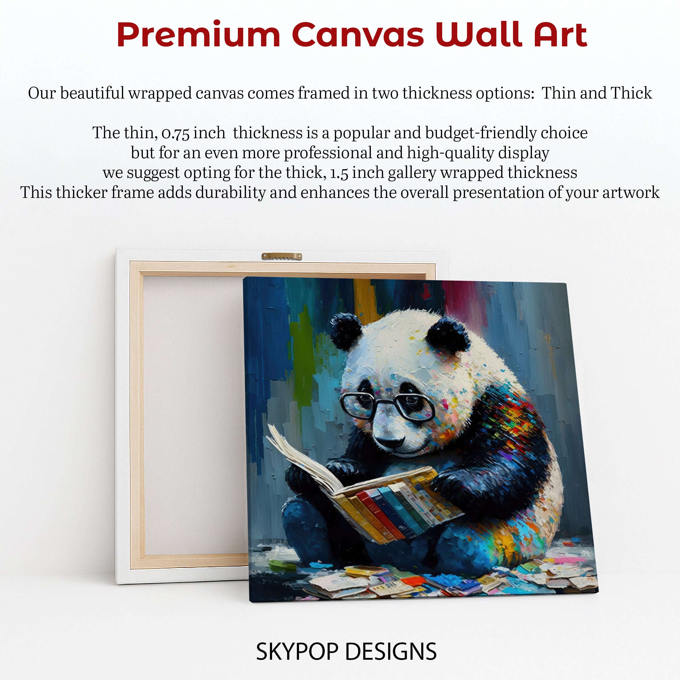 Keywords: Panda Art, Canvas Wall Art, Pop Art, Whimsical Art, Contemporary Art, Modern Decor, Bohemian Decor, Minimalist Decor, Living Room Art, Bedroom Art, Office Decor, Library Decor, Multicolor Art, Blue Art, White Art, Black Art, Book Lover Gift, Animal Art, Panda Poster, Reading Panda, Booksmart Panda, Kids Room Art, Nursery Decor, Animal Poster, Wall Decor, Home Decor, Gift Idea, Unique Art, Statement Piece, Intellectual Decor