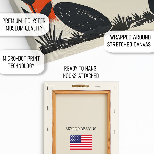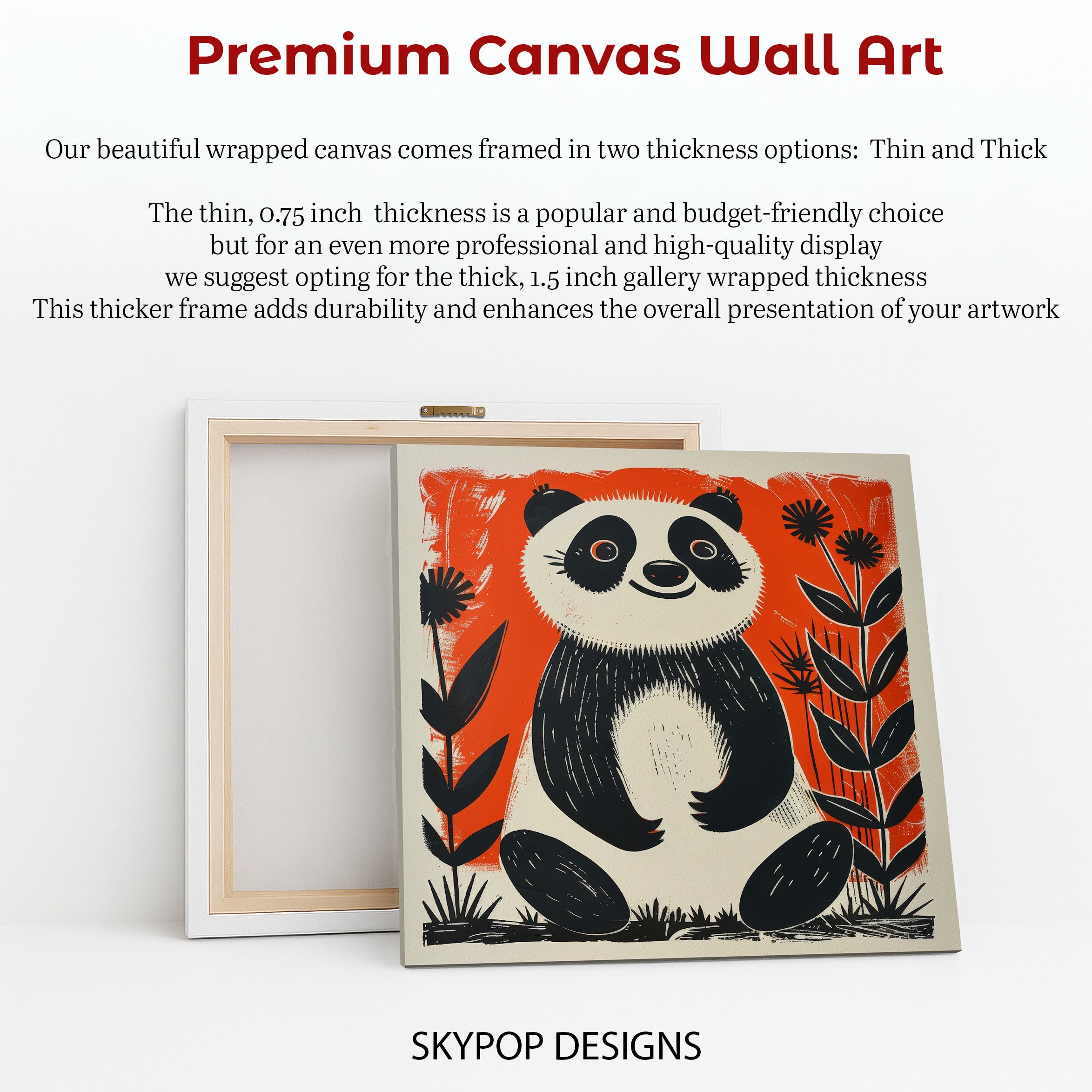 Transform your space with this vibrant panda canvas wall art, a striking piece that brings playful charm to any room. This captivating poster features a modern take on a beloved panda, set against a bold orange background with stylized black plants. The graphic art style and flat colors give this canvas print a unique, eye-catching appeal, perfect for contemporary living rooms or a child's bedroom. Elevate your decor with this striking panda artwork, ideal for a modern or bohemian aesthetic. The contrast of black and white with bright orange creates a stimulating visual experience, infusing your space with energy. This versatile wall art is a fantastic gift for birthdays, holidays, or housewarmings, and it's sure to spark joy. Whether you're looking for living room wall decor or a quirky addition to your office, this panda poster transforms ordinary spaces into extraordinary ones. The high-quality printing ensures the vivid colors and sharp lines remain pristine, making this canvas wall art a lasting statement piece. Add a splash of personality and a touch of whimsy to your home with this unique panda artwork. Embrace the modern aesthetic and let this vibrant print inspire your day. Elevate your wall decor collection with this charming and lively panda canvas art.