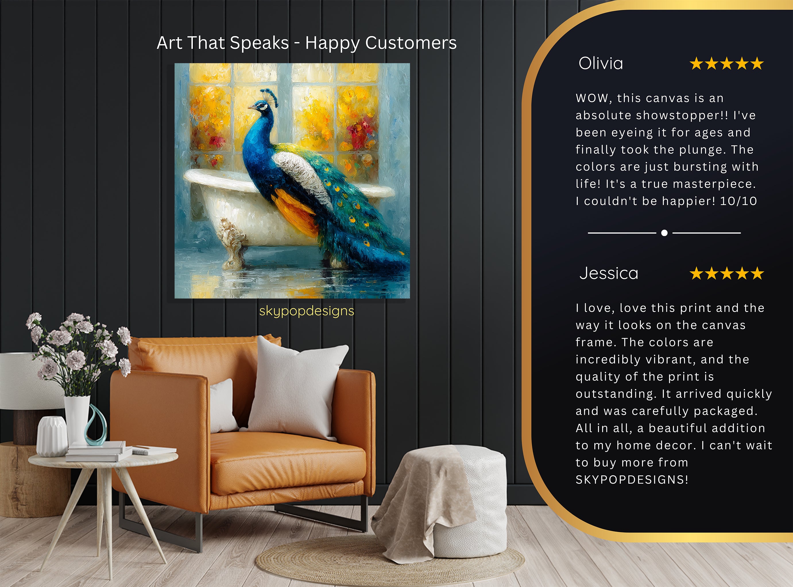 At SKYPOPDESIGNS, we specialize in high-quality canvas and poster prints designed to bring sophistication and style to your space. Please note that our designs are not created with 3D textures or as original oil, acrylic, or watercolor paintings; they are instead HD reproductions of original artwork. This approach allows us to offer these visually stunning pieces at competitive prices, ensuring you receive top-tier, maintenance-free art that's easy to enjoy.