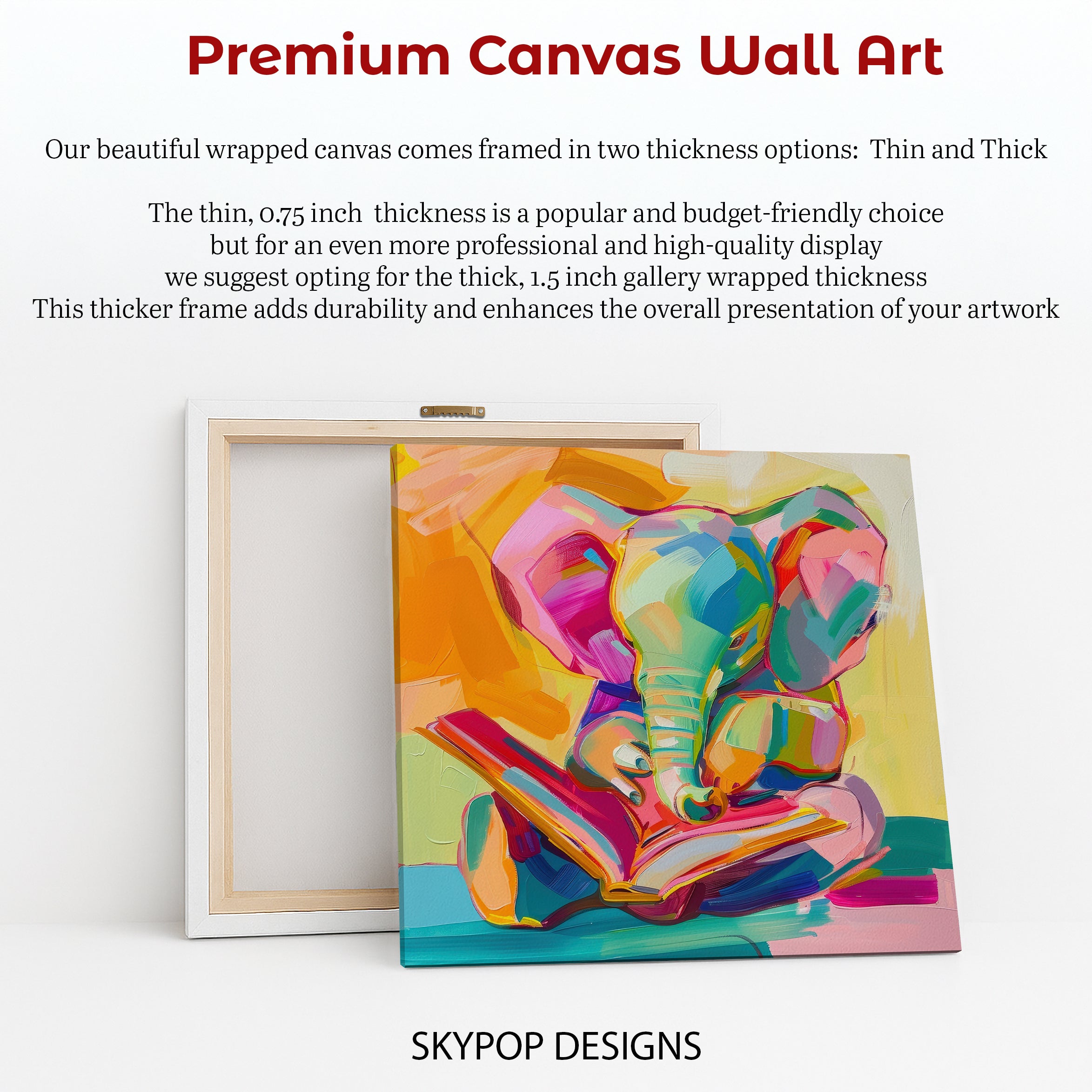 Keywords: Abstract Elephant Art, Canvas Wall Art, Multicolor Art, Yellow Elephant Poster, Pink Art Print, Blue Elephant Decor, Animal Wall Art, Whimsical Art, Contemporary Decor, Bohemian Style, Modern Art, Living Room Art, Children's Room Decor, Bedroom Wall Art, Office Art, Elephant Art Print, Reading Elephant, Colorful Wall Art, Joyful Decor, Uplifting Atmosphere, Expressive Art, Statement Piece, Unique Wall Decor, Fantasy Art, Inspiring Art, Birthday Gift, Housewarming Present, High-Quality Canvas, Vibrant Art, Creative Decor