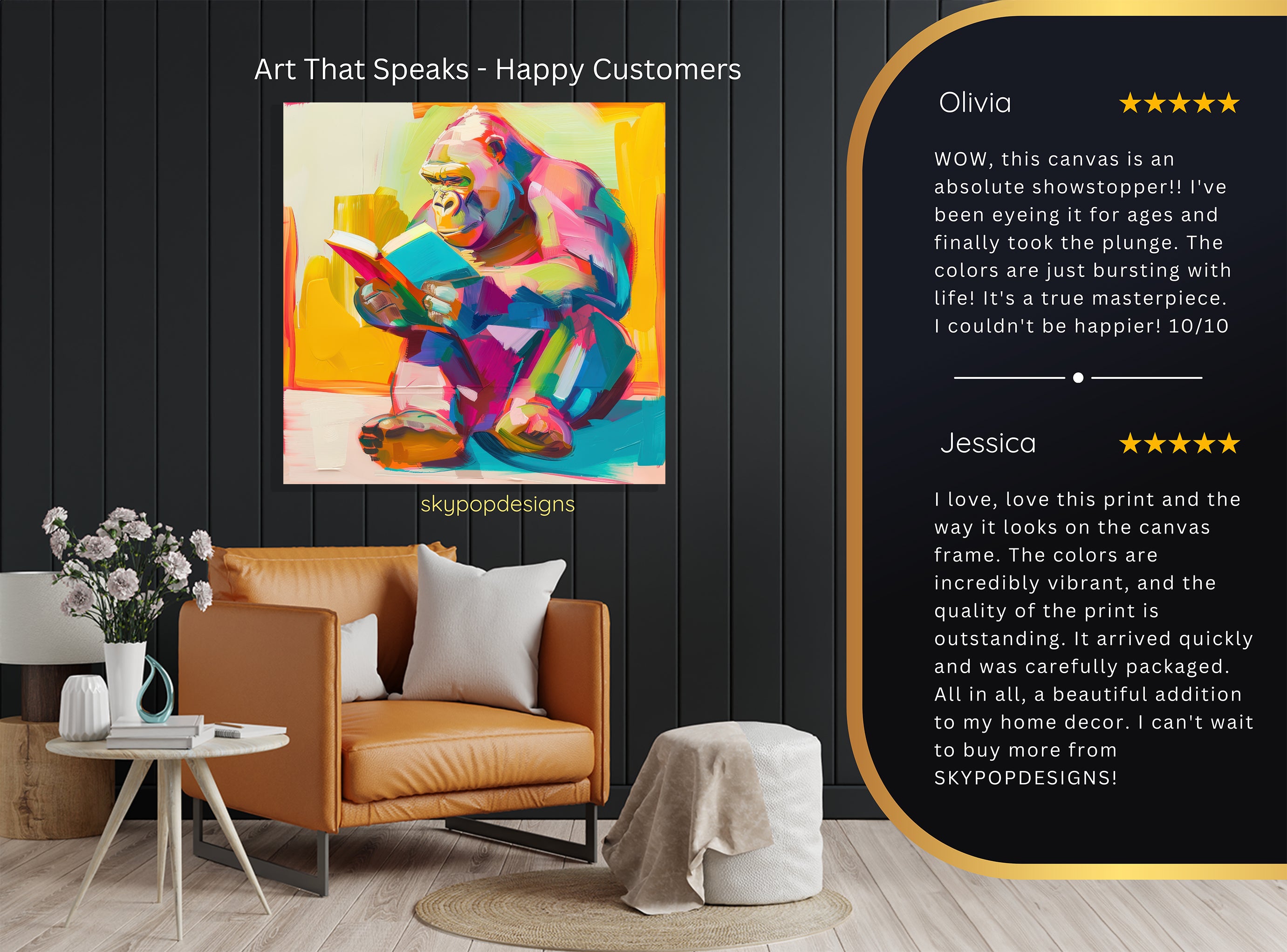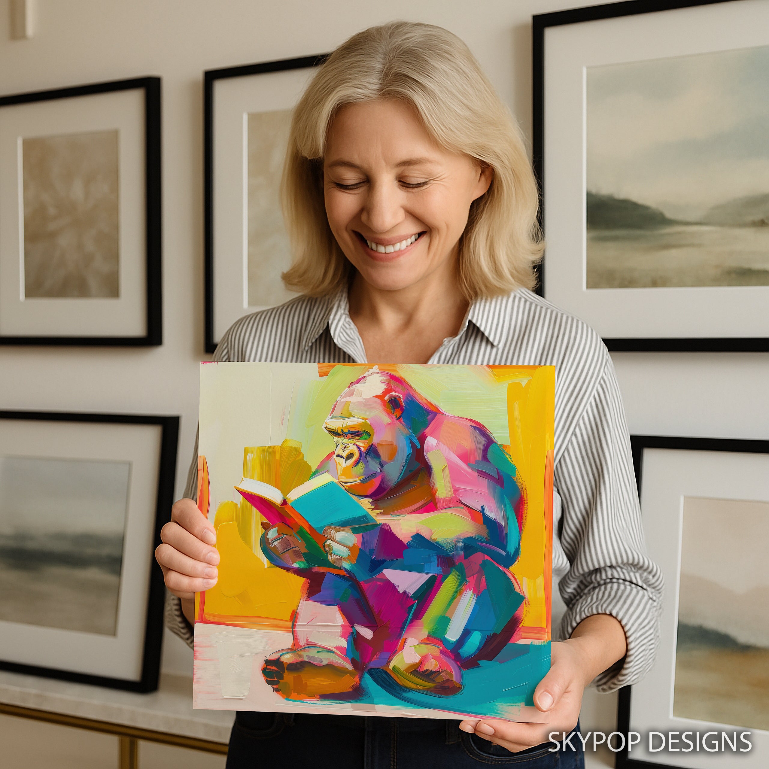 Keywords: Gorilla Art, Reading Gorilla, Canvas Wall Art, Abstract Art, Pop Art, Contemporary Art, Modern Decor, Bohemian Decor, Living Room Art, Office Art, Bedroom Decor, Multicolor Art, Yellow Art, Pink Art, Blue Art, Animal Art, Wall Poster, Home Decor, Wall Hangings, Art for Walls, Unique Art, Vibrant Colors, Creative Office Decor, Book Lover Gift, Art Collector Gift, Statement Piece, Textured Canvas, Whimsical Art, Intelligent Animal Art, Literary Decor