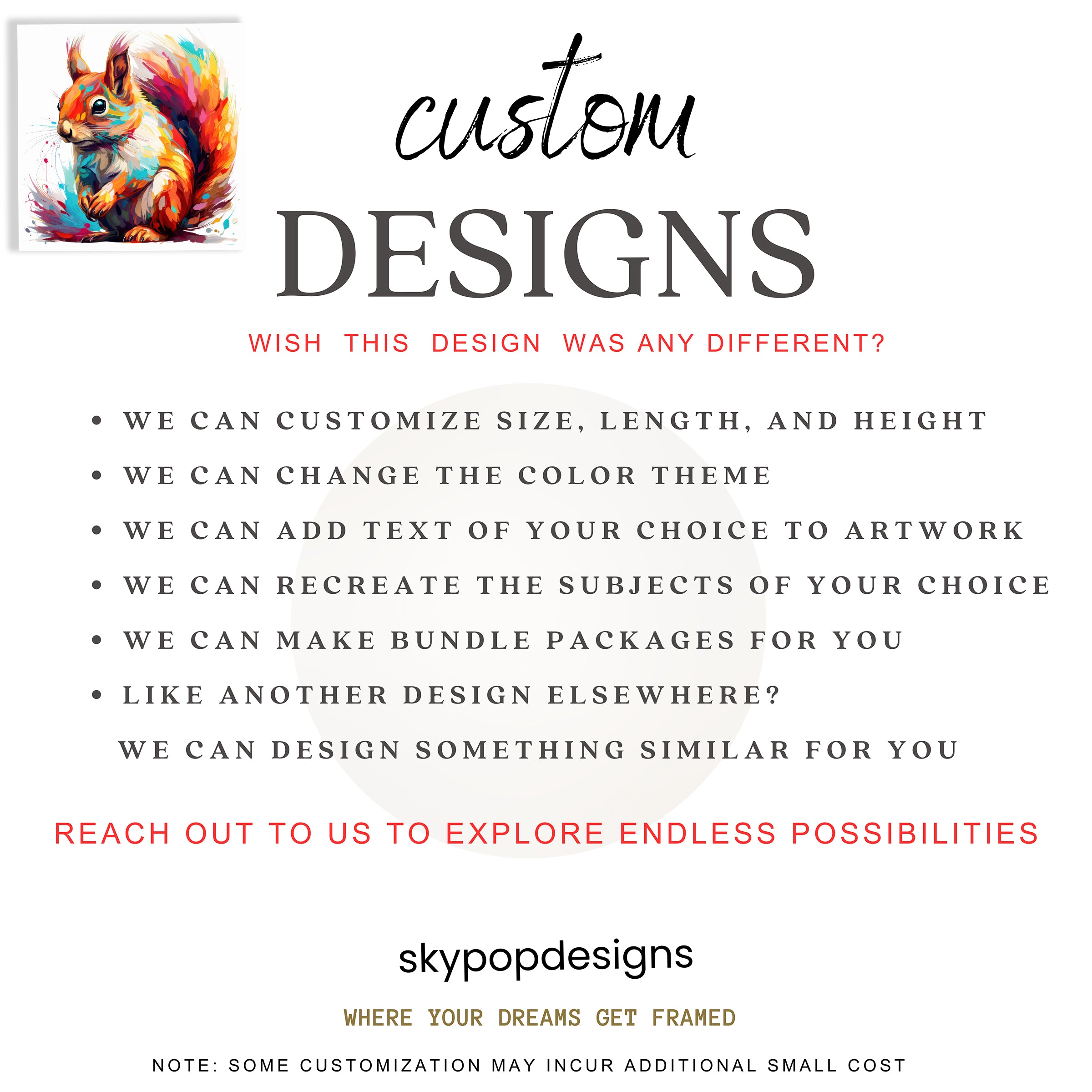 Looking for a custom design, or do you love a particular design but need it in a different size or orientation? Perhaps you've found a design elsewhere and wish for us to create something similar for you? Drop us a message! We're dedicated to meeting your needs and will work closely with you to ensure your vision comes to life.