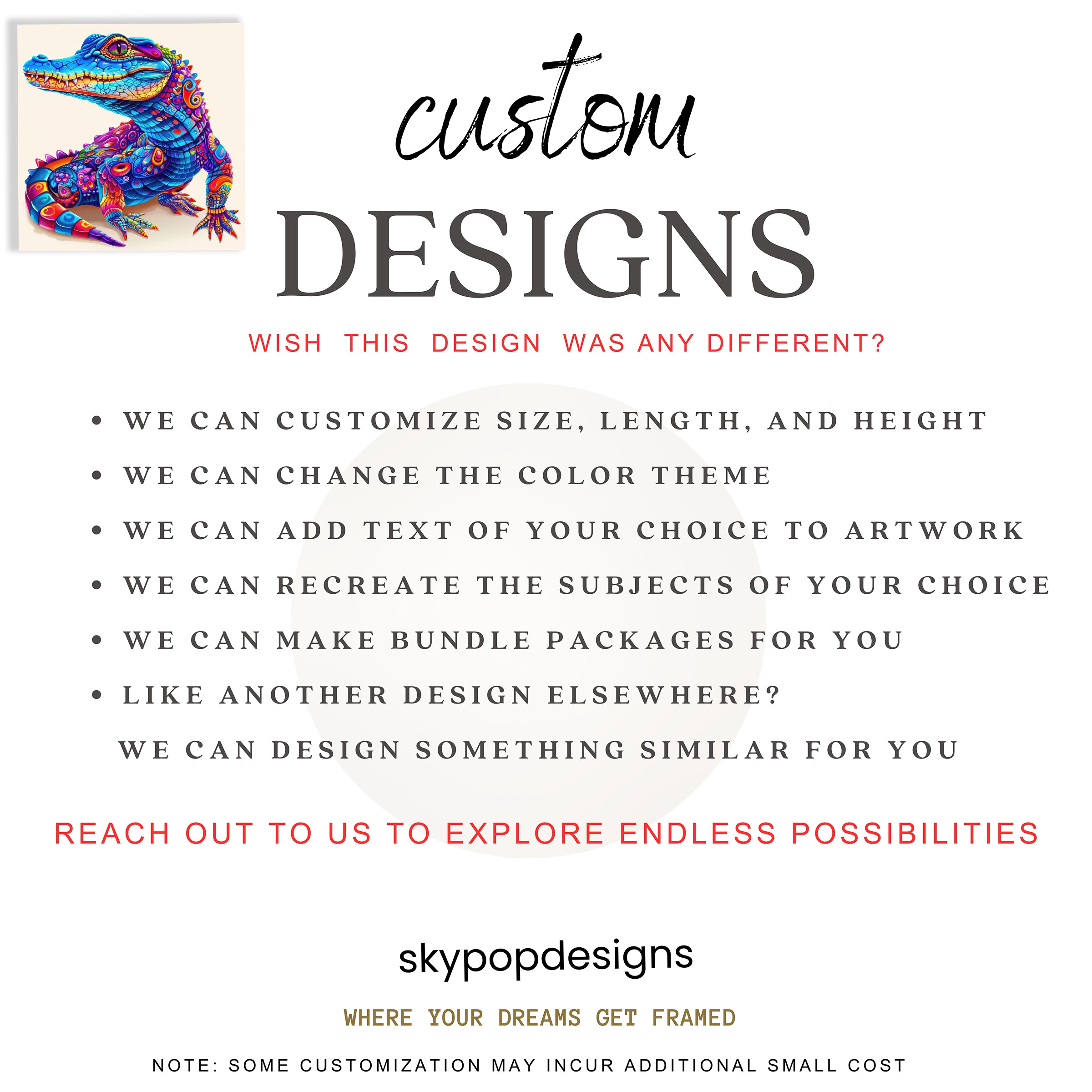 Looking for a custom design, or do you love a particular design but need it in a different size or orientation? Perhaps you've found a design elsewhere and wish for us to create something similar for you? Drop us a message! We're dedicated to meeting your needs and will work closely with you to ensure your vision comes to life.