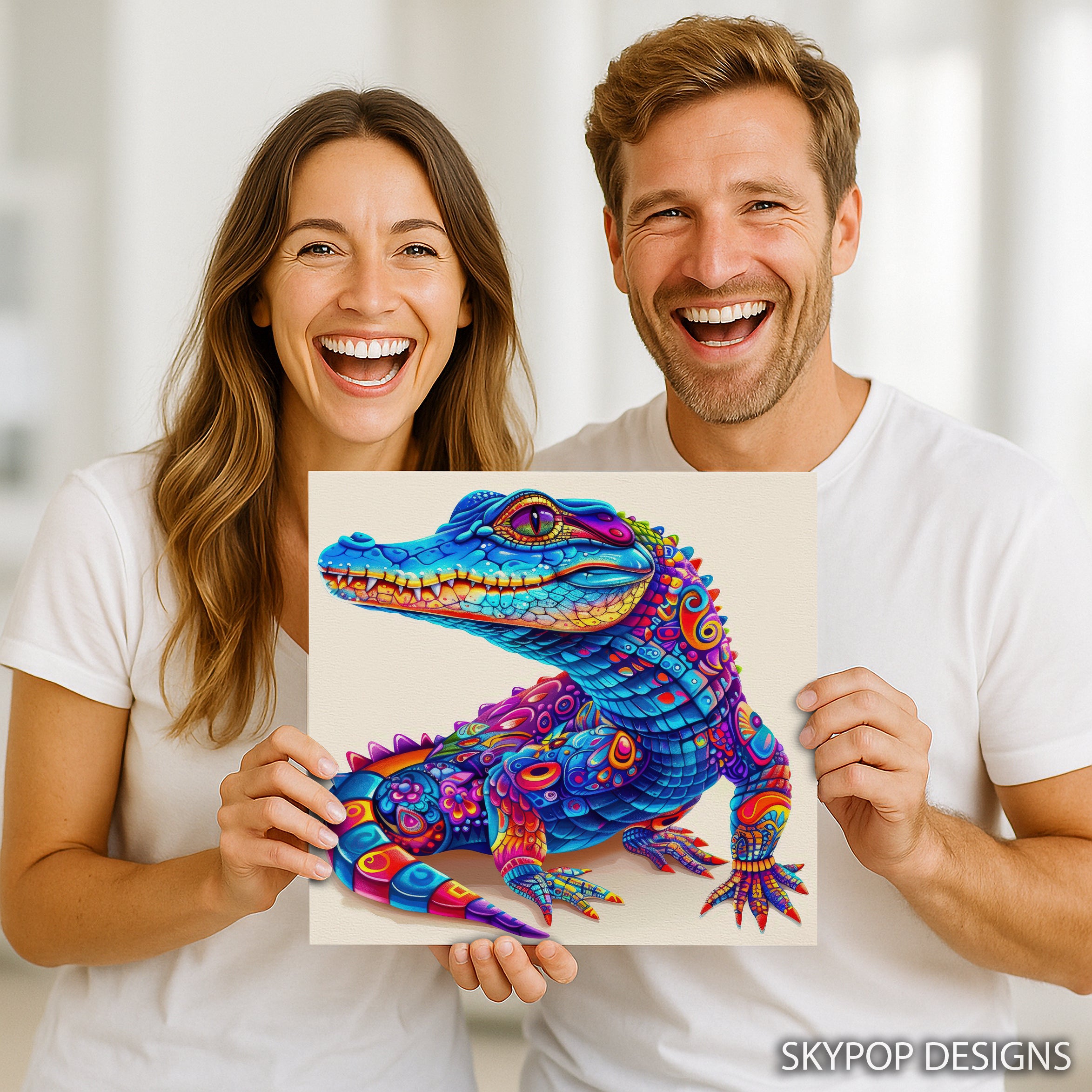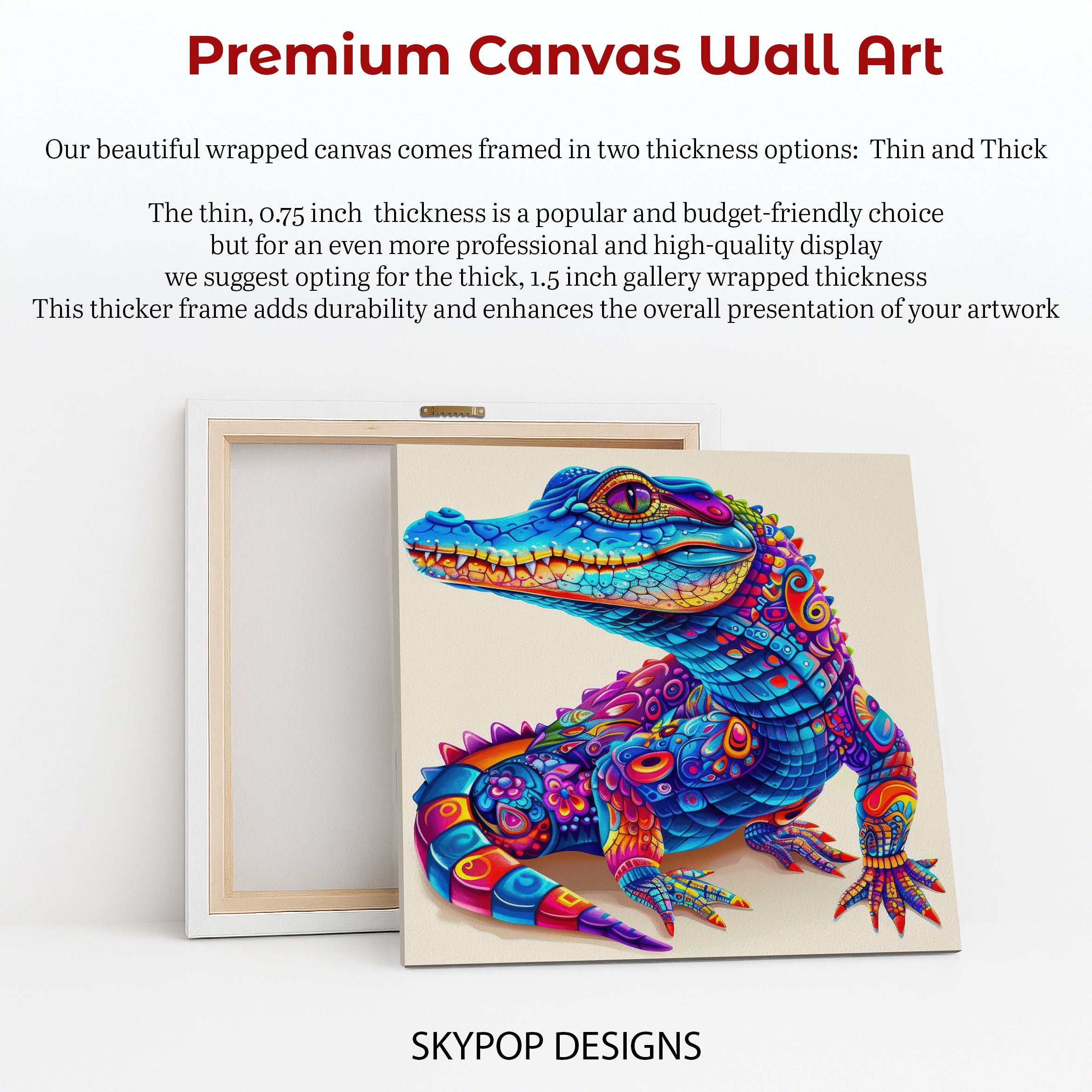 Keywords: Pop Art Crocodile Art, Abstract Alligator Canvas, Contemporary Wall Art, Bohemian Decor, Modern Home Decor, Eclectic Living Room Art, Bedroom Wall Art, Office Decor, Entryway Art, Multicolor Art, Blue Purple Yellow Art, Rainbow Gator Print, Psychedelic Animal Art, Statement Wall Art, Whimsical Art, Bold Decor, Colorful Canvas Print, Vibrant Wall Decor, Artistic Gift, Housewarming Gift, Birthday Gift, Art Lover Gift, Animal Print Art, Psychedelic Art, Contemporary Art Piece, Crocodile Poster, Unique Home Decor, Creative Office Art, Living Room Accent, Bedroom Accent
