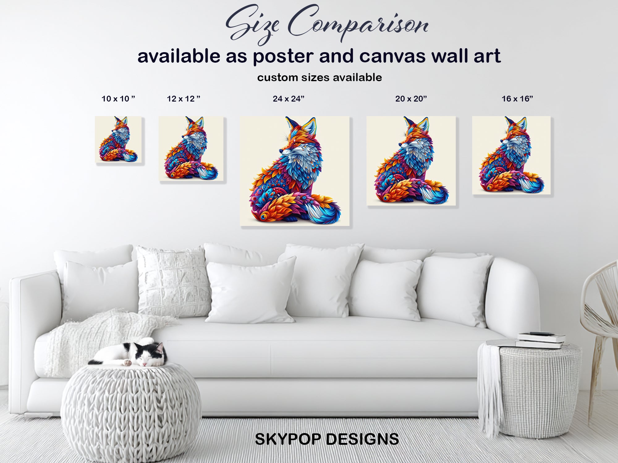 Keywords: Fox Wall Art, Canvas Wall Art, Animal Art, Nature Art, Contemporary Art, Bohemian Decor, Modern Decor, Eclectic Decor, Living Room Art, Bedroom Art, Entryway Decor, Office Wall Art, Multicolor Art, Blue Art, Orange Art, Purple Art, Vibrant Fox Art, Spirit Animal Art, Wildlife Art, Home Decor, Wall Decor, Art Print, Poster Art, Housewarming Gift, Gift for Art Lover, Gift for Nature Lover, Joyful Decor, Energetic Decor, Creative Decor, Animal Kingdom Art