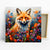 Fox Flowers Art, Canvas or Poster, Modern Bohemian Decor, Living Room Bedroom Entryway Office Wall Art, Multicolor Orange Blue Purple