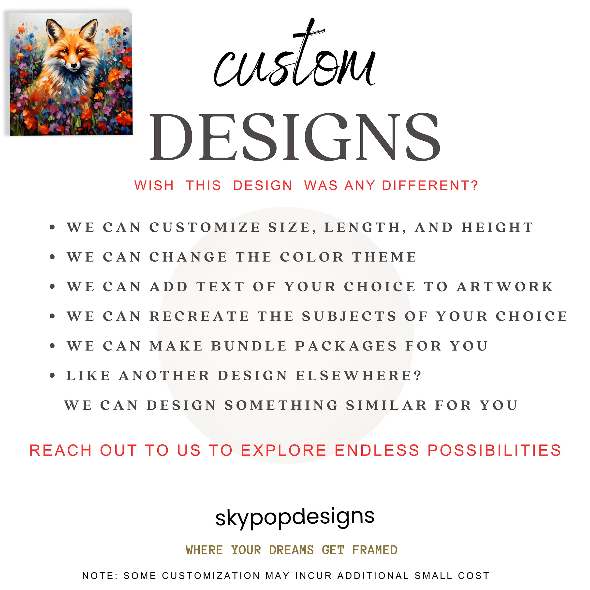 At SKYPOPDESIGNS, we specialize in high-quality canvas and poster prints designed to bring sophistication and style to your space. Please note that our designs are not created with 3D textures or as original oil, acrylic, or watercolor paintings; they are instead HD reproductions of original artwork. This approach allows us to offer these visually stunning pieces at competitive prices, ensuring you receive top-tier, maintenance-free art that's easy to enjoy.