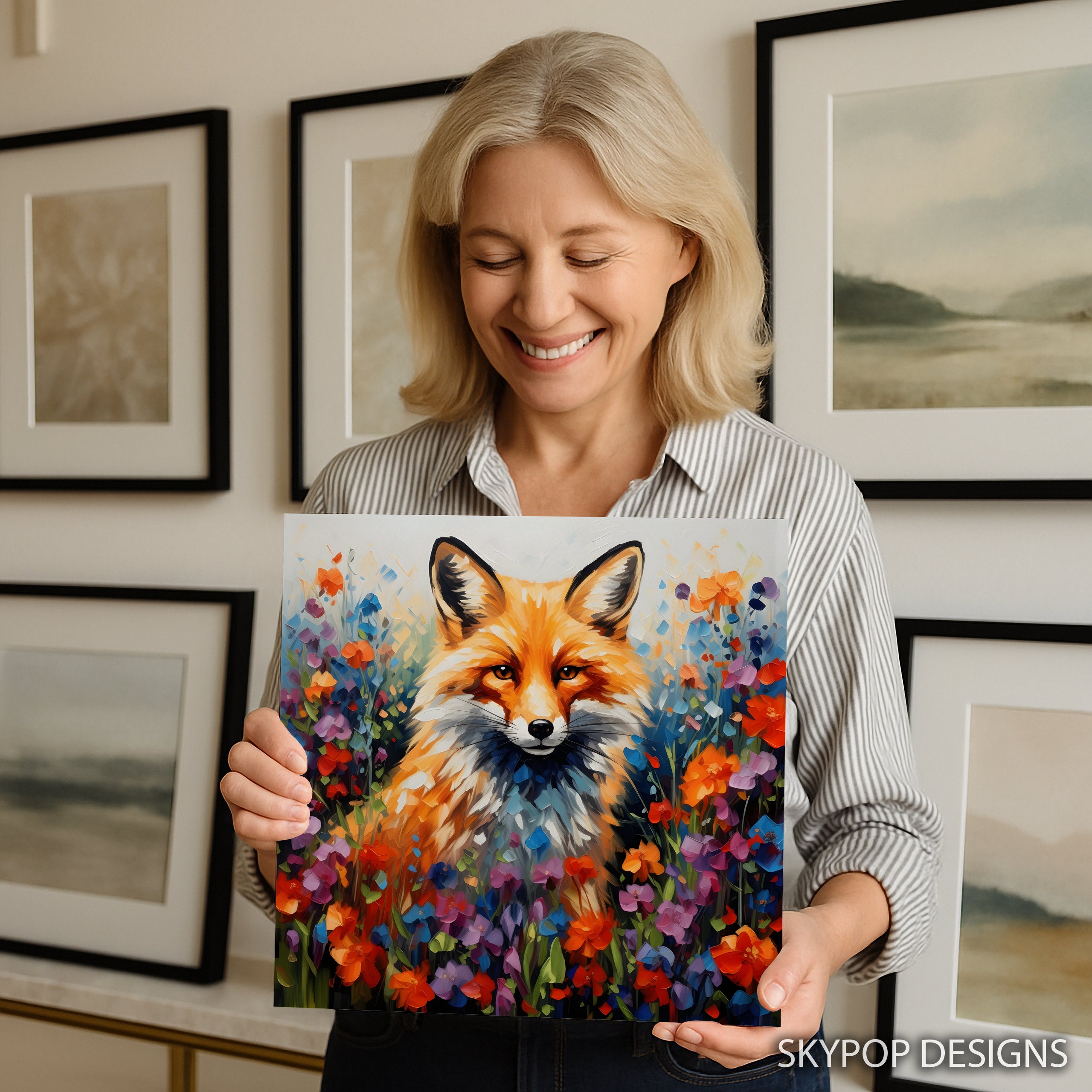 Keywords: Fox Canvas Art, Nature Wall Art, Animal Wall Art, Contemporary Art, Modern Decor, Bohemian Decor, Transitional Decor, Living Room Art, Bedroom Art, Entryway Decor, Office Art, Multicolor Art, Orange Art, Blue Art, Purple Art, Red Flowers Art, Fox In Flowers, Fox Print, Canvas Print, Wall Art Decor, Home Decor Art, Art for Walls, Wildlife Art, Pet Art, Floral Art, Art Poster, Framed Art, Art Gifts, Housewarming Gift, Birthday Gift