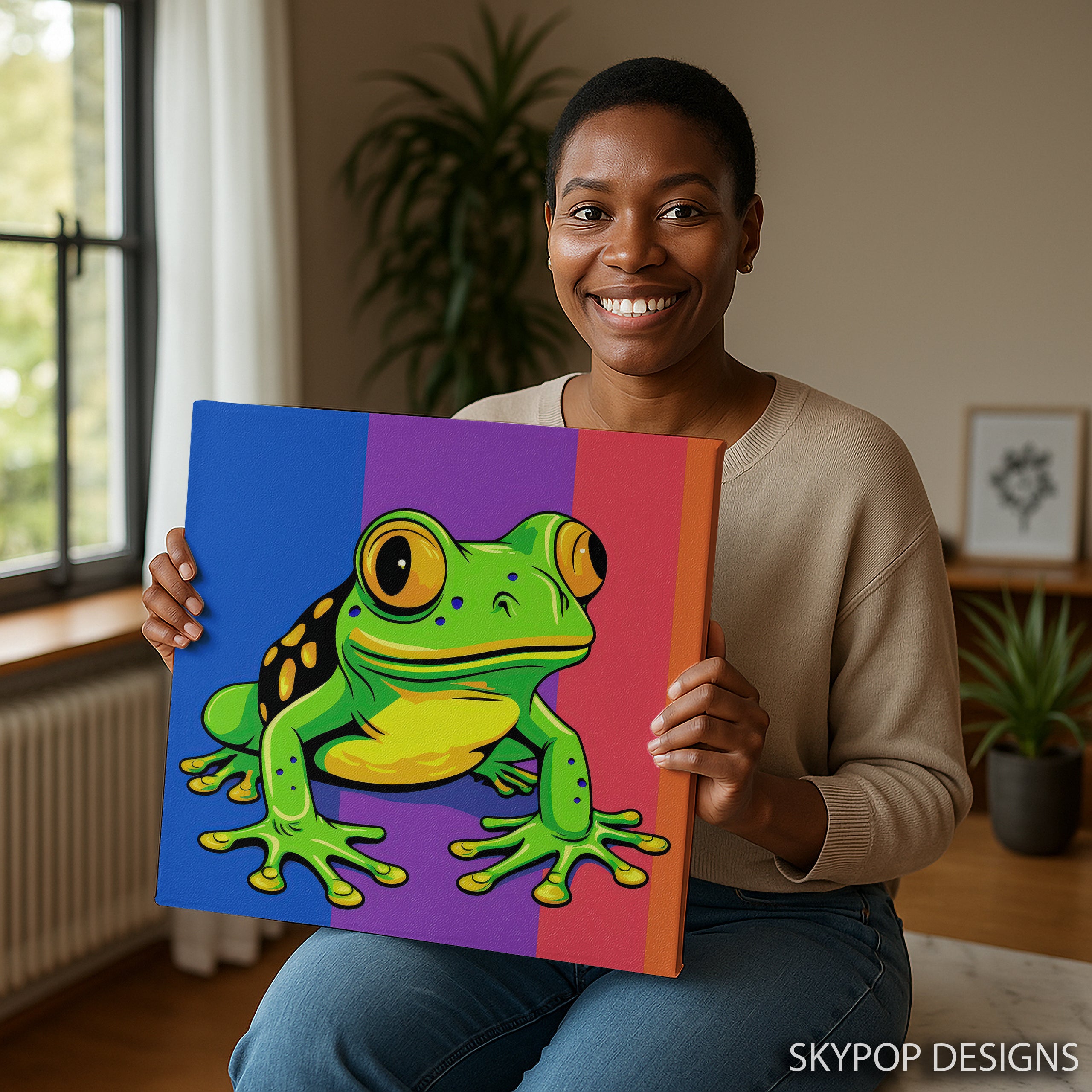 Keywords: Pop Art Frog, Graffiti Art, Whimsical Art, Modern Decor, Contemporary Art, Bohemian Style, Living Room Art, Children's Room Decor, Bedroom Wall Art, Office Artwork, Multicolor Art, Blue Frog Art, Purple Frog Art, Orange Frog Art, Vivid Frog Art, Frog Canvas Print, Animal Wall Art, Vibrant Art, Home Decor, Wall Decor, Art Poster, Unique Art, Gift for Art Lovers, Fun Wall Art, Cheerful Decor, Creative Artwork, Inspiring Art, Colorful Frog, Pop Culture Art, Statement Piece