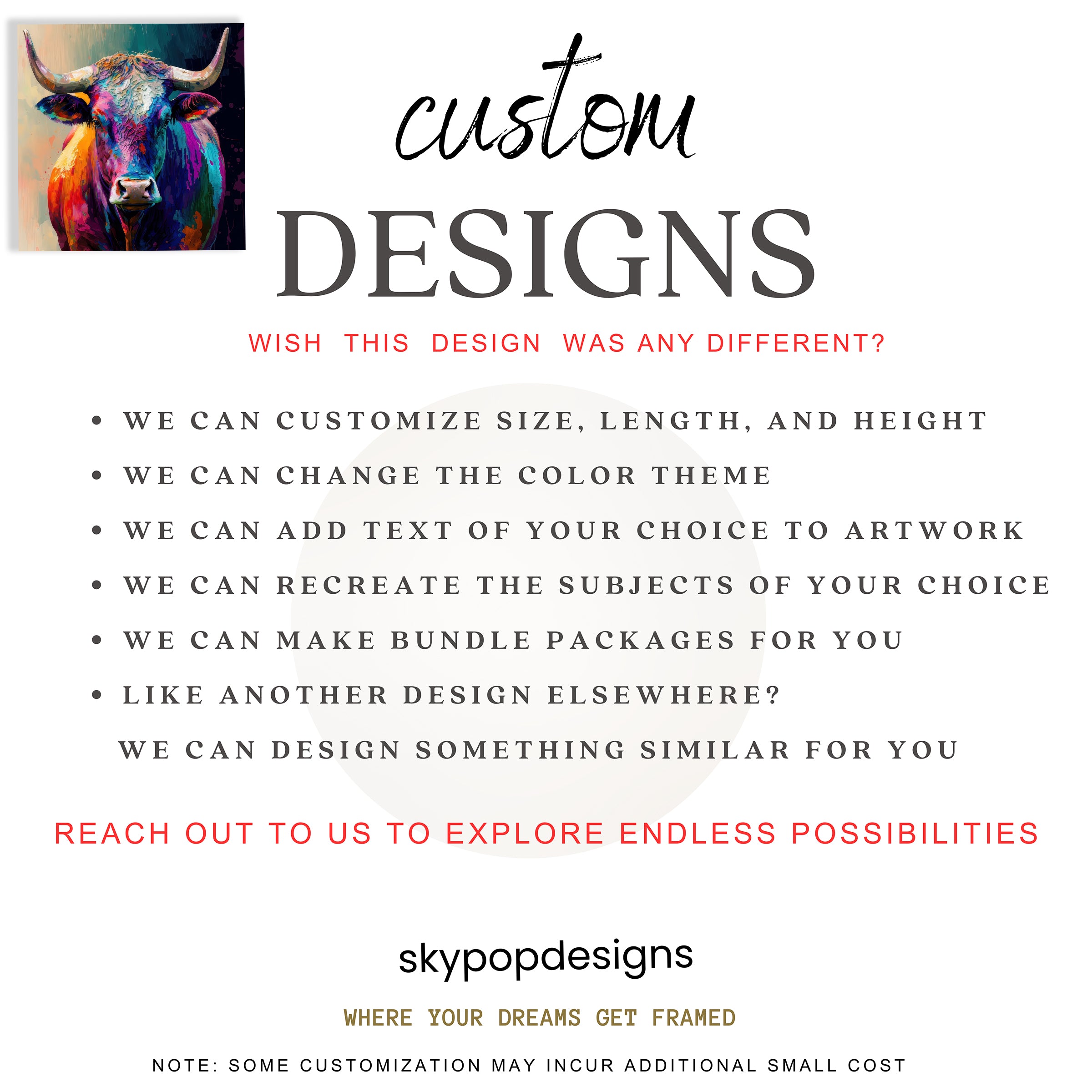 Looking for a custom design, or do you love a particular design but need it in a different size or orientation? Perhaps you've found a design elsewhere and wish for us to create something similar for you? Drop us a message! We're dedicated to meeting your needs and will work closely with you to ensure your vision comes to life.