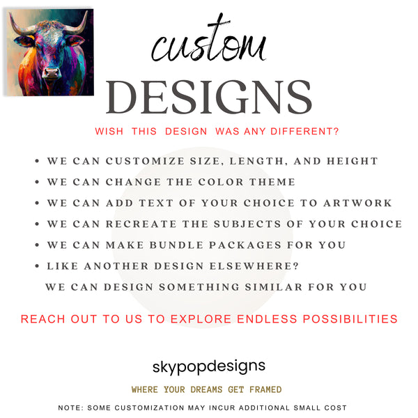 At SKYPOPDESIGNS, we specialize in high-quality canvas and poster prints designed to bring sophistication and style to your space. Please note that our designs are not created with 3D textures or as original oil, acrylic, or watercolor paintings; they are instead HD reproductions of original artwork. This approach allows us to offer these visually stunning pieces at competitive prices, ensuring you receive top-tier, maintenance-free art that's easy to enjoy.