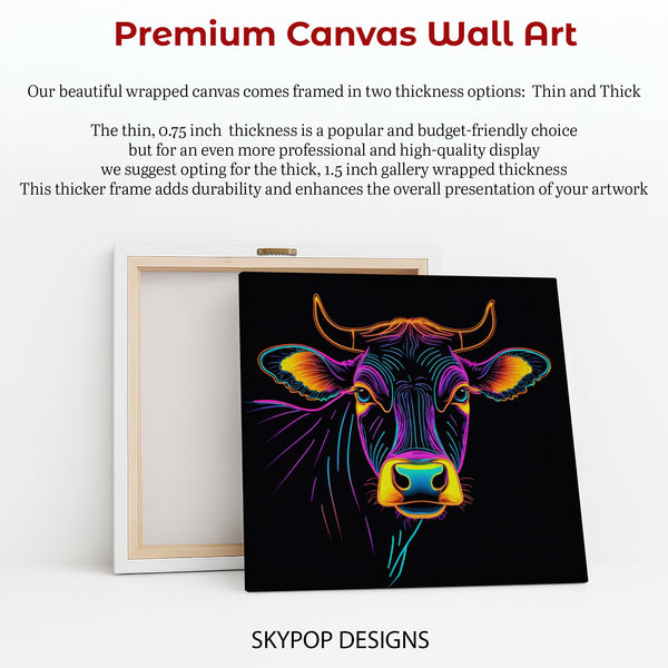 Transform your space with this vibrant Highland Cow canvas wall art, a striking piece that merges pop art and abstract elements. The captivating neon glow highlights the majestic Highland Cow, creating a unique focal point that’s perfect for modern living rooms or eclectic bedrooms. This eye-catching poster or canvas wall art showcases the beauty of animal art with a contemporary twist, using a multicolor palette with dominant gold, purple, and teal tones to evoke a sense of energetic sophistication. Ideal for glam or bohemian decor, this wall art adds a bold statement to any room, from a chic office to a welcoming entryway. The striking use of color psychology with neon hues can inspire creativity and a sense of excitement, making it a conversation starter for guests. This versatile canvas print is perfect for those seeking trendy home decor that stands out. Elevate your walls today with this stunning Highland Cow artwork that celebrates nature with an urban edge. It's a fantastic gift for animal lovers, cow enthusiasts, or anyone appreciating unique wall decor for housewarming or birthdays. The high-quality printing ensures the vivid neon lines pop, making this poster a treasured addition to your art collection. Enhance your home’s aesthetic appeal with this dynamic and unforgettable piece of wall art, designed to create an inspiring atmosphere.