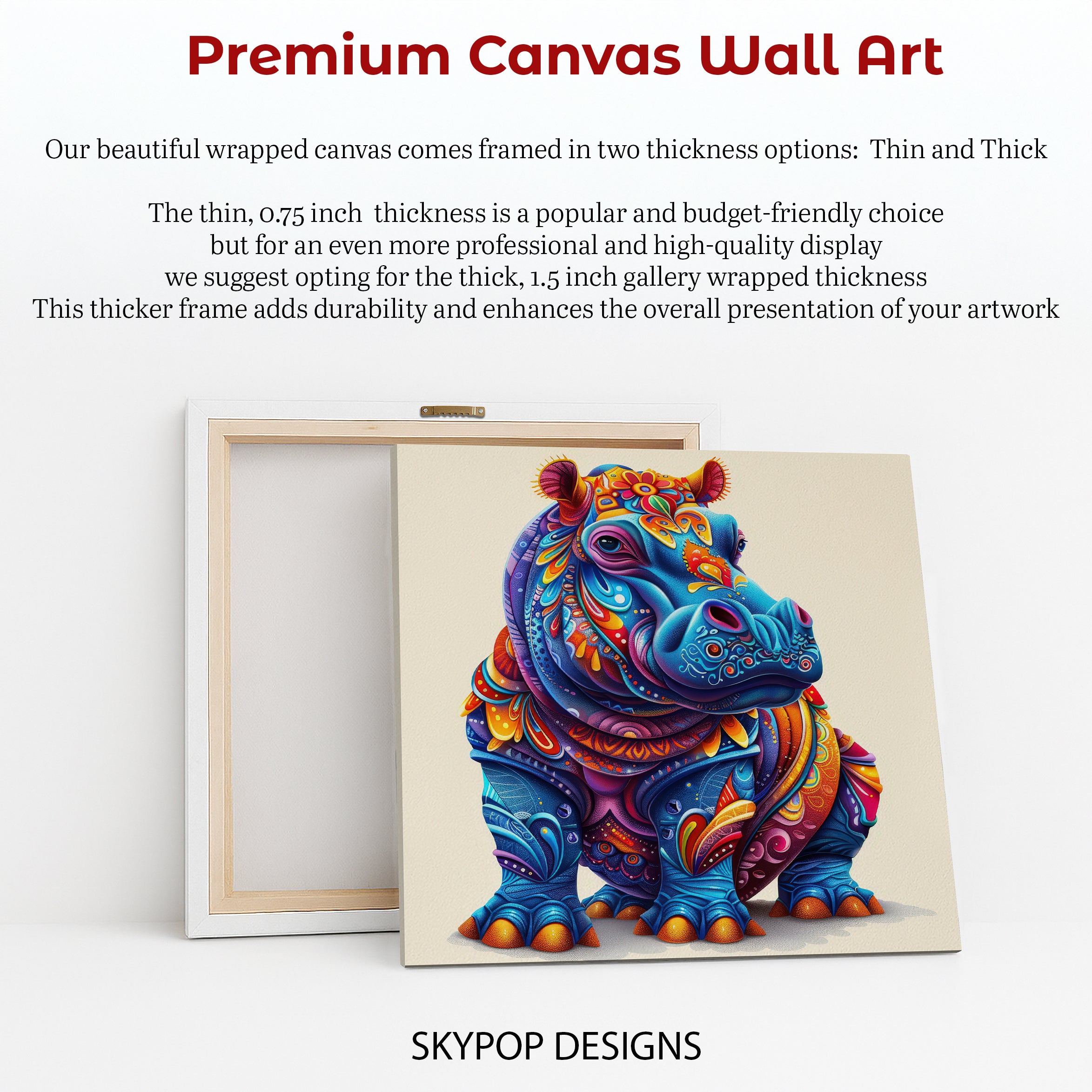 Transform your home with this vibrant hippopotamus canvas wall art, a truly captivating piece that brings eclectic style and bold color to any space. This unique poster showcases a stylized hippopotamus adorned with intricate, psychedelic patterns, perfect for adding a bohemian flair or a modern pop to your decor. The striking multicolor design, featuring deep blues, fiery oranges, and rich purples, creates a visually dynamic focal point that will inspire conversation and elevate your interior design.