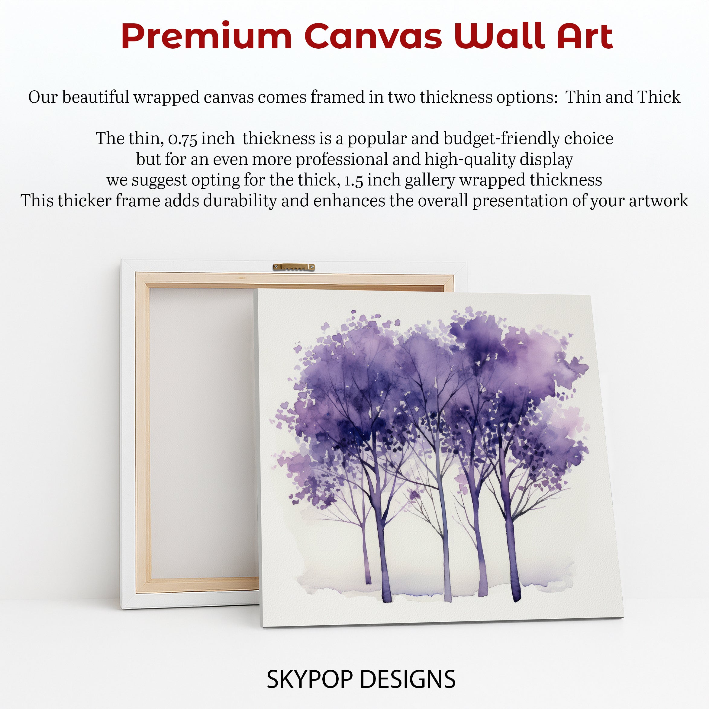 Keywords: Purple Trees Art, Watercolor Canvas, Nature Wall Art, Abstract Art, Impressionism Art, Modern Decor, Minimalist Art, Scandinavian Style, Living Room Art, Bedroom Decor, Entryway Wall Art, Office Art, Purple Wall Art, Grey Art, White Art, Multicolor Artwork, Serene Atmosphere, Calming Art, Tranquil Decor, Tree Artwork, Botanical Art, Artistic Sophistication, Home Decor, Wall Decor, Canvas Print, Birthday Gift, Housewarming Gift, Holiday Gift, Nature's Beauty, Purple Lavender Tones
