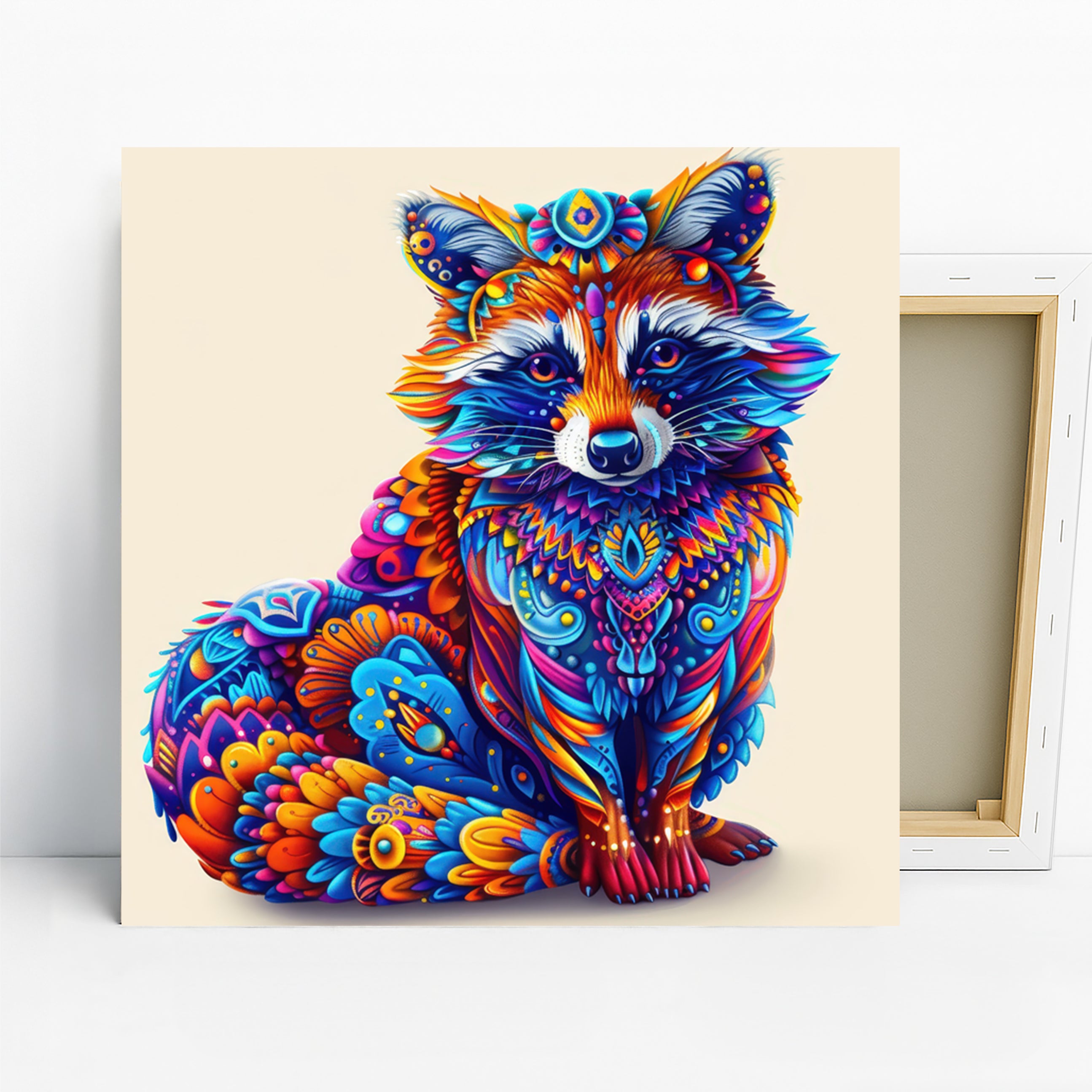 Transform your living space with this vibrant Raccoon canvas wall art. The striking multicolor design features intricate patterns and a bohemian aesthetic, perfect for adding a pop of color to any room. This captivating poster or canvas wall art showcases a whimsical raccoon reimagined with abstract, ornamental details, creating a unique focal point. The bold blues, oranges, and purples evoke a sense of joy and creativity, making this piece ideal for modern, bohemian, or eclectic decor styles. Elevate your bedroom, office, or entryway with this stunning animal art that celebrates nature and artistry. It's a perfect gift for raccoon lovers or anyone seeking to infuse their home with vibrant energy and personality. The detailed design of this canvas wall art will inspire conversation and bring a touch of the extraordinary to your walls. High-quality printing ensures the rich colors and intricate patterns are beautifully preserved. Whether you're looking for contemporary living room wall decor or a cheerful piece for your bedroom, this raccoon canvas art delivers. Embrace the captivating artistry and transform your home decor today.