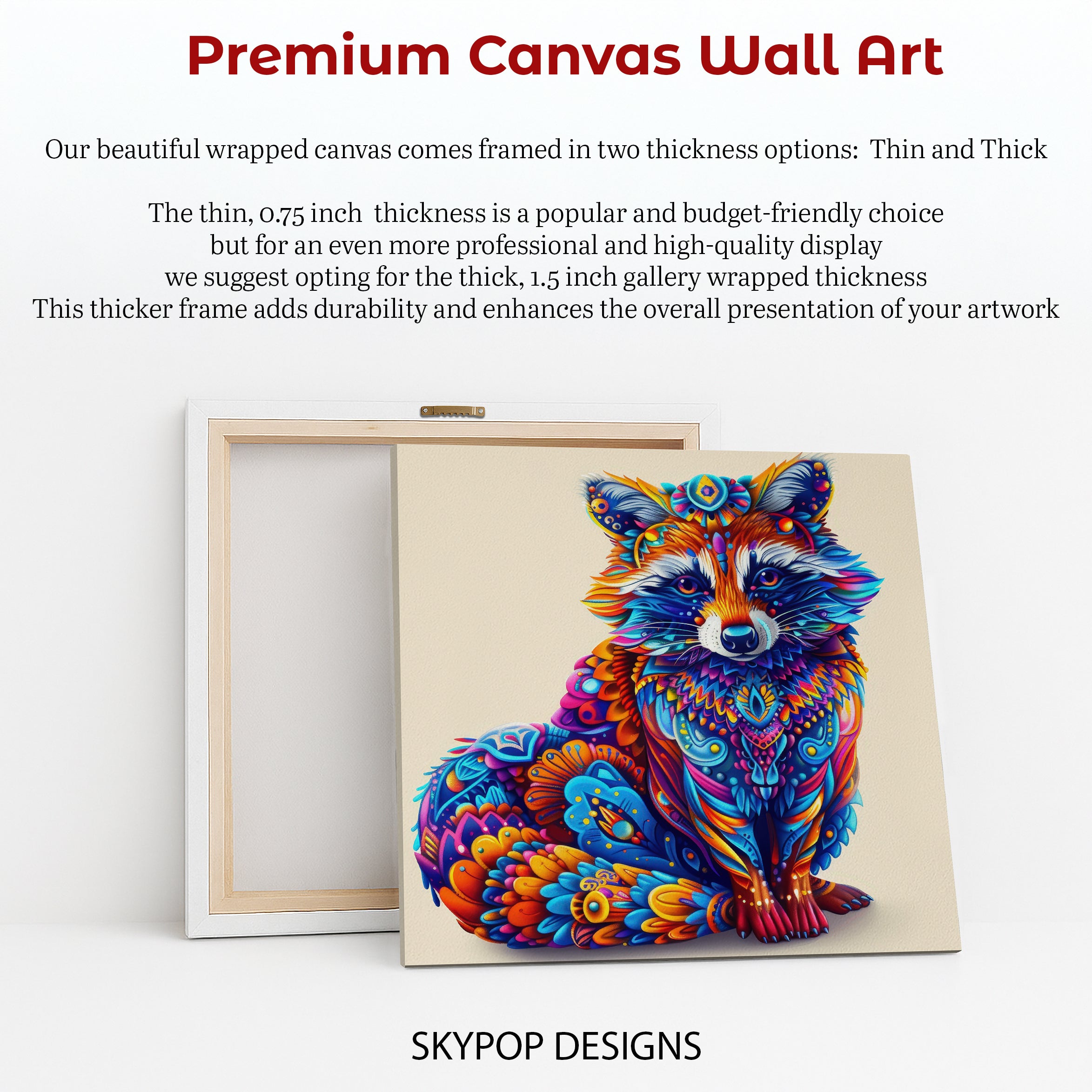 Raccoon Art, Canvas or Poster, Bohemian Contemporary Decor, Living Room Bedroom Office Wall Art, Multicolor Blue Orange Purple