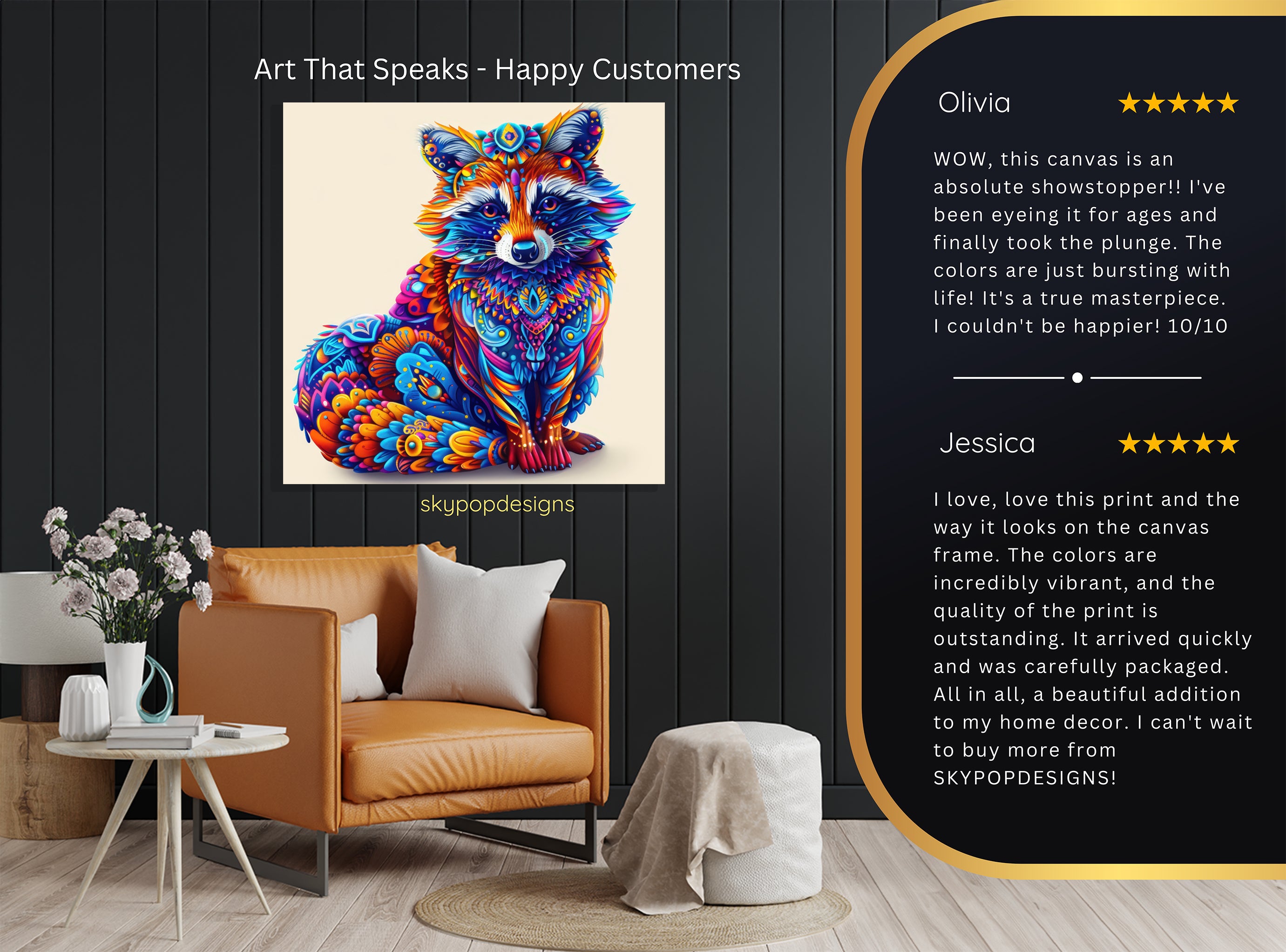 Keywords: Abstract Art, Nature Art, Whimsical Art, Bohemian Decor, Contemporary Decor, Modern Decor, Living Room Art, Bedroom Art, Office Art, Entryway Decor, Multicolor Wall Art, Blue Wall Art, Orange Wall Art, Purple Wall Art, Raccoon Art, Mexican Raccoon Art, Colorful Art, Canvas Wall Art, Wall Art Poster, Animal Wall Art, Home Decor, Interior Design, Vibrant Art, Joyful Decor, Creative Art, Unique Wall Art, Gift for Raccoon Lovers, Artwork for Walls, Decorative Art, Statement Piece