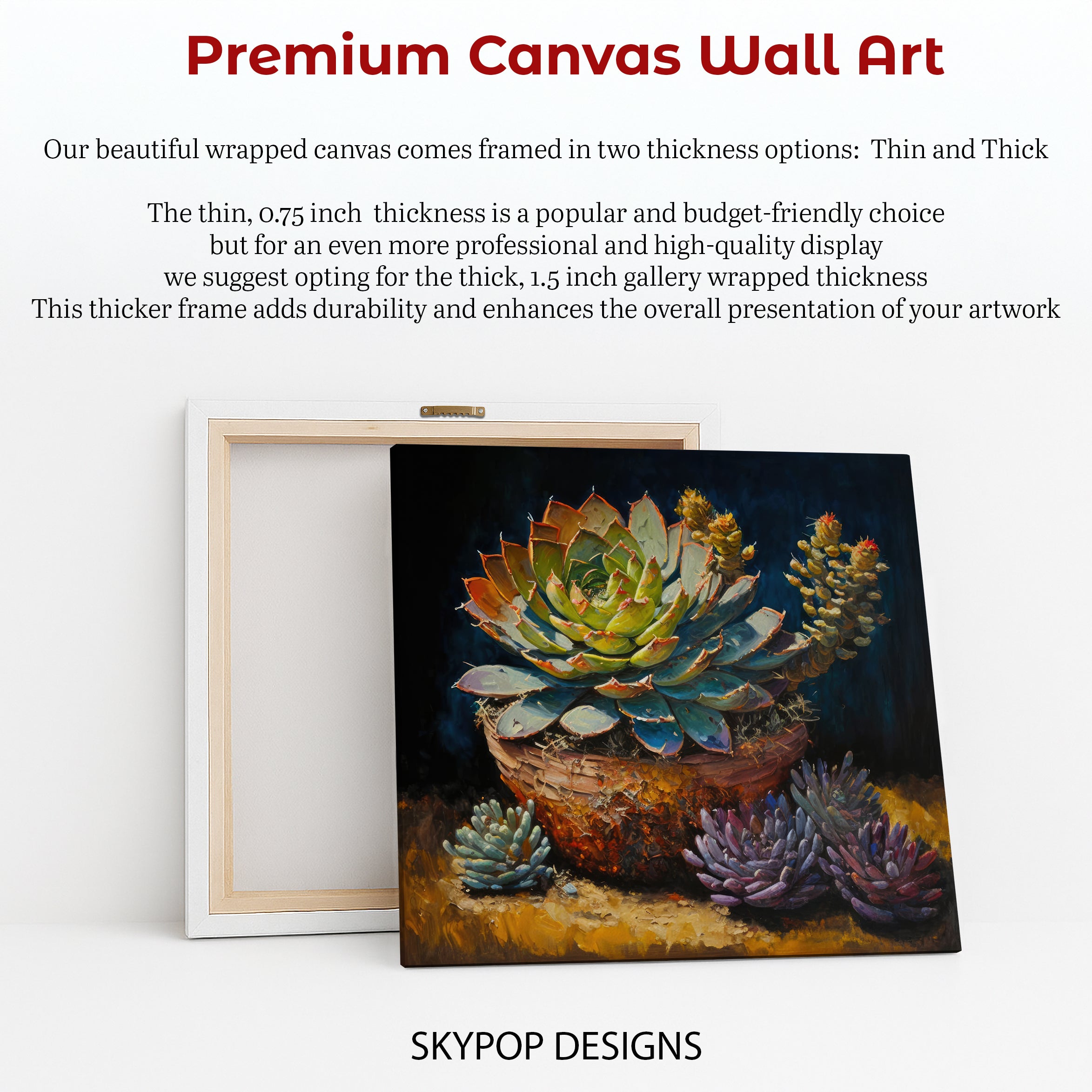 Keywords: Succulent Wall Art, Canvas Print, Nature Art, Contemporary Art, Botanical Art, Still Life Art, Modern Decor, Minimalist Decor, Bohemian Decor, Living Room Art, Office Decor, Bedroom Art, Bathroom Decor, Green Art, Brown Art, Purple Art, Yellow Art, Plant Art, Indoor Garden, Art Poster, Wall Decor, Home Decor, Interior Design, Tranquil Art, Organic Elegance, Housewarming Gift, Unique Artwork, Plant Life Art, Botanical Print, Desert Plant Art