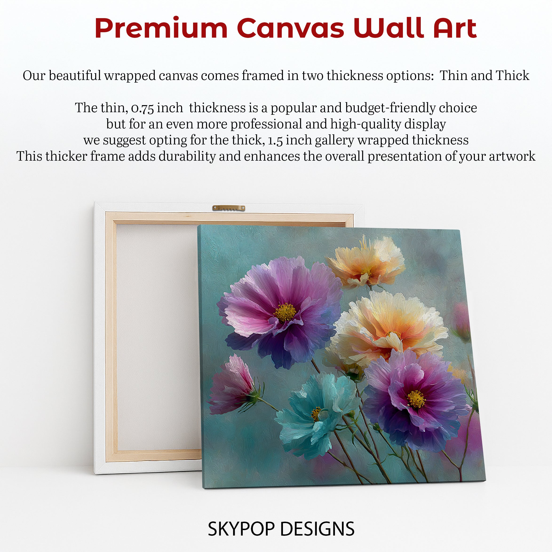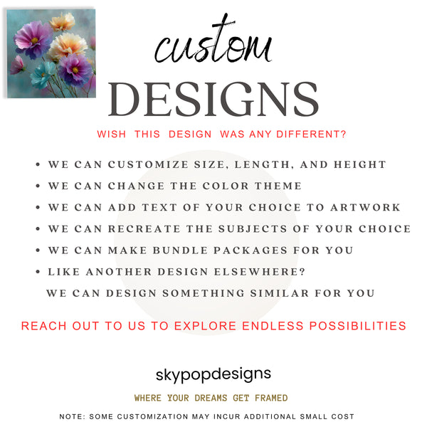 At SKYPOPDESIGNS, we specialize in high-quality canvas and poster prints designed to bring sophistication and style to your space. Please note that our designs are not created with 3D textures or as original oil, acrylic, or watercolor paintings; they are instead HD reproductions of original artwork. This approach allows us to offer these visually stunning pieces at competitive prices, ensuring you receive top-tier, maintenance-free art that's easy to enjoy.